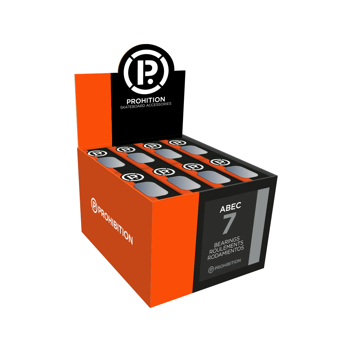 Replacement bearings 608 RS ABEC 7 (display contains 24 set) – STEEL CHROME BALLS – STEEL CHROME RINGS – RUBBER SEAL SHIELDS – NYLON 66 RETAINER