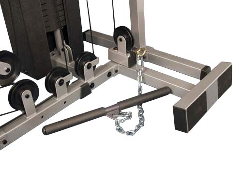 Poulie basse : permet l’exĂ©cution d’une grande variĂ©tĂ© d’exercices tels que le lancer de jambes (fessiers et adducteurs), le travail des biceps et le rowing (assis et debout)