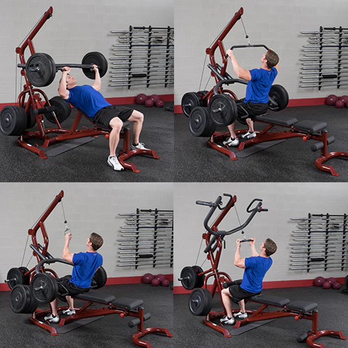 -Le système de « poulie basse » permet de travailler les « curls » (biceps) et également le tirage horizontal « rowing ».