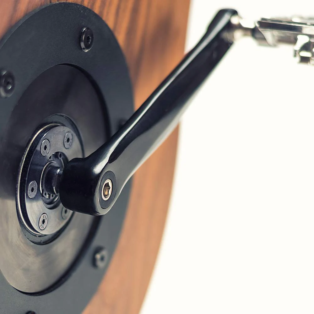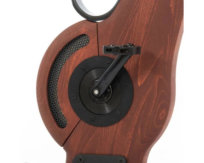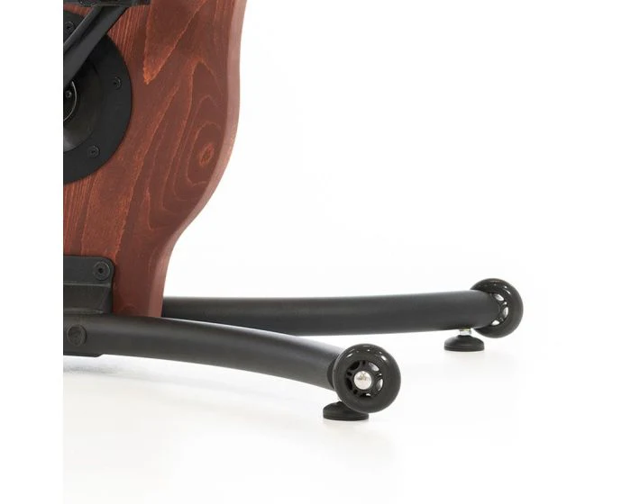 • Transmission mĂ©canique d’un ratio de 1:8 (1 tour de pĂ©dales est Ă©gale Ă  8 tours de roue) actionnant une roue d’inertie de 5,5 kg freinĂ©e par un frein Ă  induction : Pas de chaĂ®ne, ni de courroie donc sans usure de garniture et sans Ă  coup, pour un pĂ©dalage fluide et Ă©quilibrĂ©.