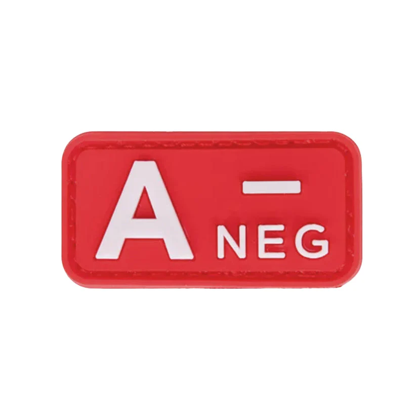 Blood Type Patch (A+, B+, AB+, O+, A-, B-, AB-, O-) Red with velcro so you can personalize your Gympack backpack. Material: Rubber Dimensions: 5 cm x 2.5 cm