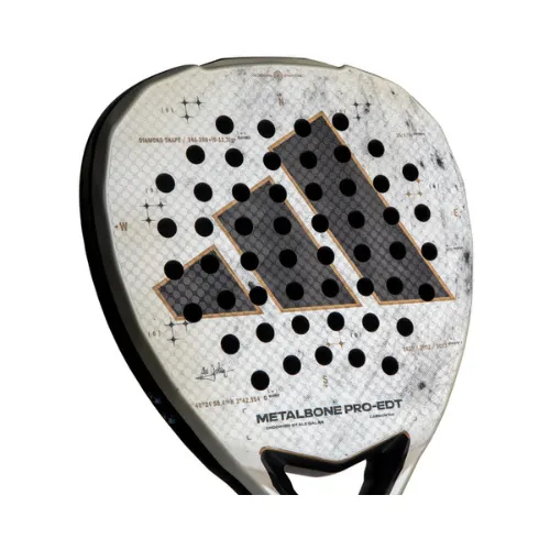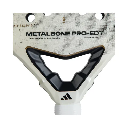 Édition limitée Adidas Metalbone 3.4 Pro EDT, conçue avec Ale Galán. Forme Diamond, face Carbon 16K, mousse EVA Soft, surface Spin Blade, structure octogonale : puissance explosive, contrôle raffiné et personnalisation via Weight & Balance.