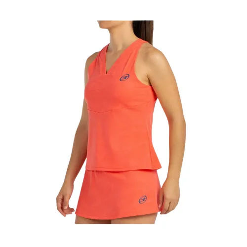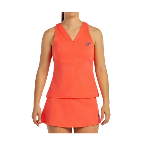 Débardeur Bullpadel Cortega Geranium : jacquard nylon-élasthanne, finition DryLum de séchage rapide, coupe ajustée, encolure en V & dos décoratif. Performance et style pour joueuses exigeantes.