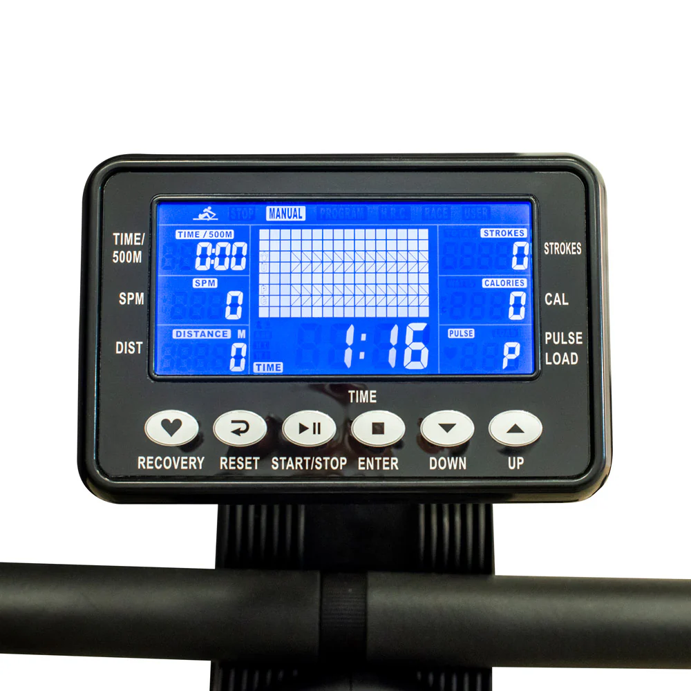 16 niveaux de rĂ©sistance rĂ©glĂ©s par bouton « UP » « DOWN » pour ajuster le degrĂ© d’entrainement.