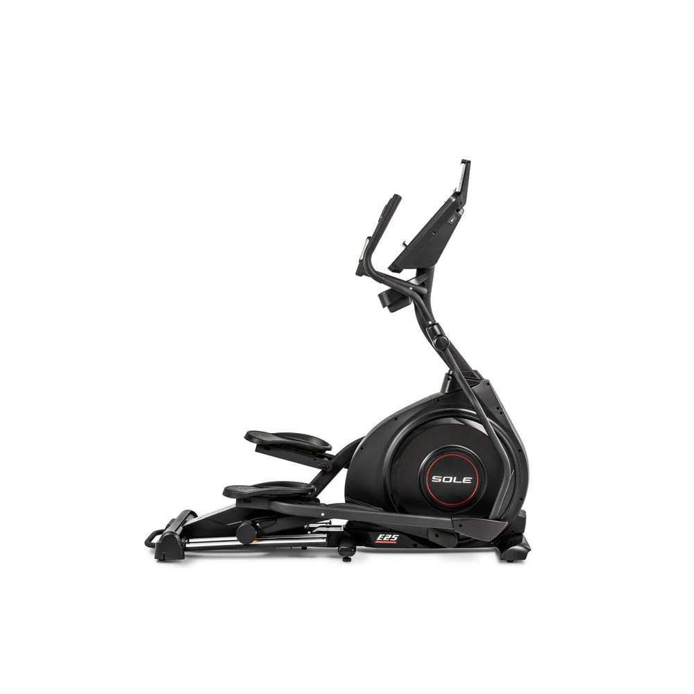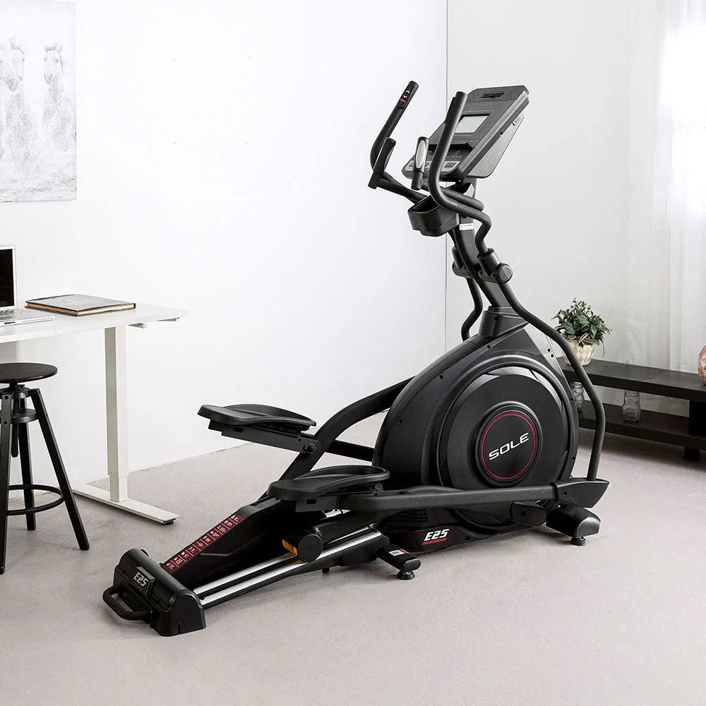 Le E25 de Sole dispose d’une rampe inclinable motorisĂ©e et d’une rĂ©sistance Ă©lectromagnĂ©tique, toutes deux rĂ©glables sur 20 niveaux.
