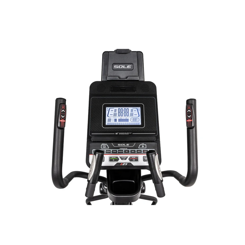 Le Sole E25 dispose d’un système de résistance électromagnétique réglable sur 20 niveaux, que vous pouvez ajuster facilement depuis la console ou directement grâce aux boutons situés sur les bras.