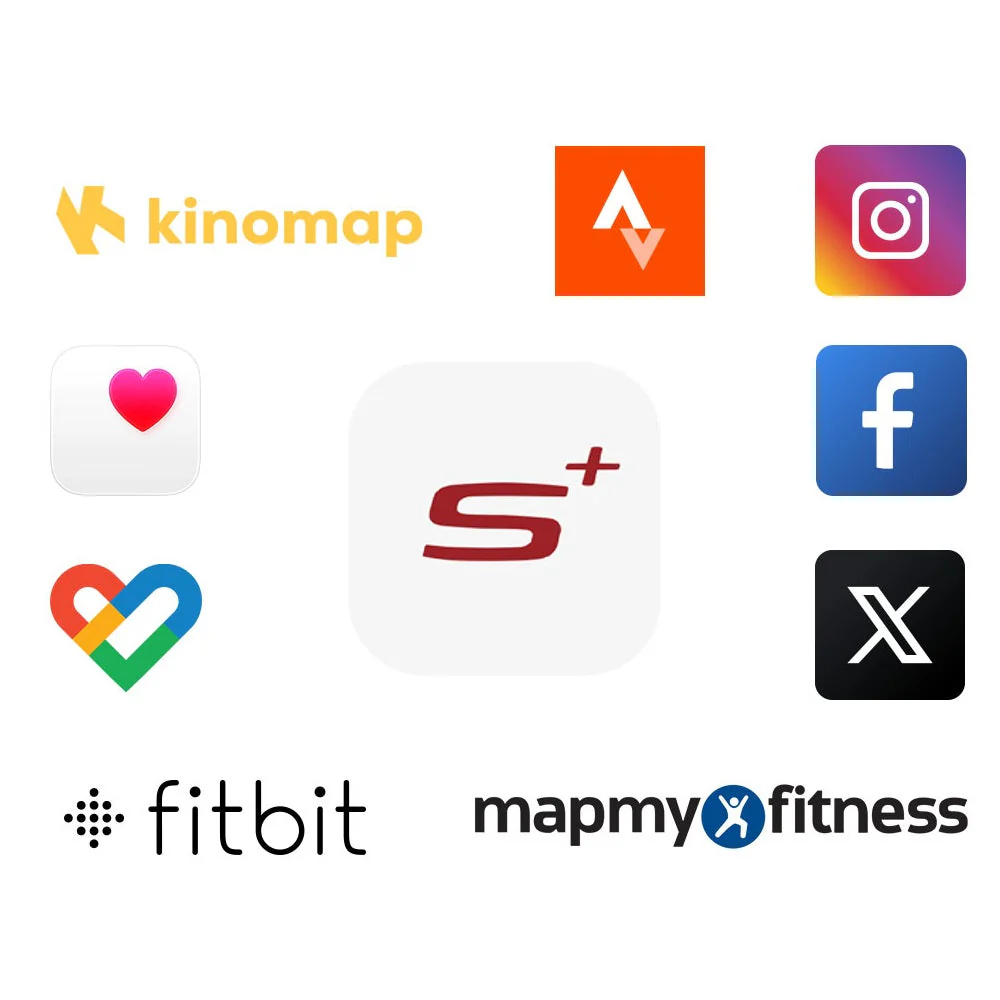 Les applications compatibles sont : Sole +, Kinomap, APPLE Health, Google Fit, Strava, Fitbit, MapMyFitness, Facebook, Instagram, X(Twitter).