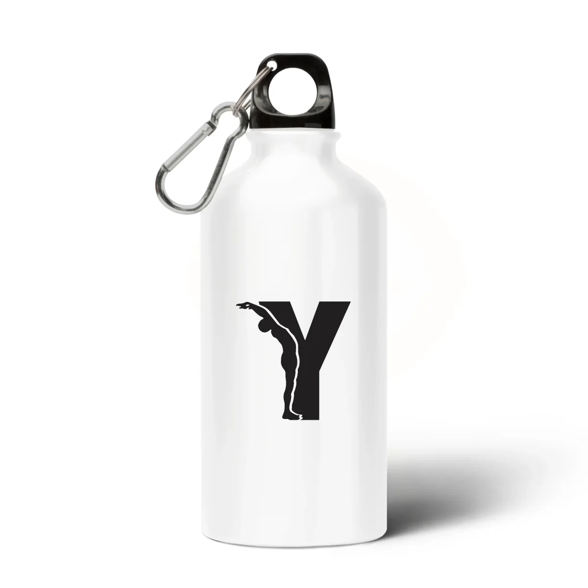 Notre gourde sport est en aluminium blanc avec le logo de Yofe Yoga, son style est sobre et sportif Ă la fois.