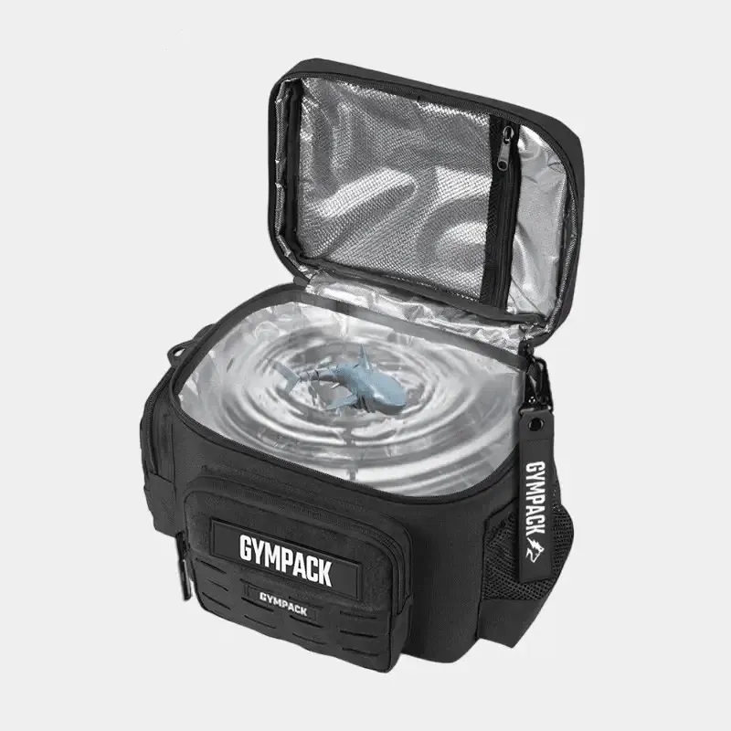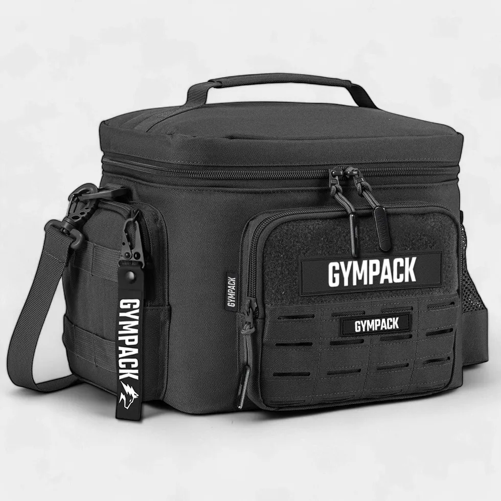 Introducing the Gympack Insulated Lunch Bag, in black, with a 13-liter capacity and leak-proof construction. It's ideal for keeping your meals at the right temperature. Made of highly water-resistant 900D nylon with four layers of thermal insulation, it retains heat for up to 8 hours and cold for up to 12 hours .