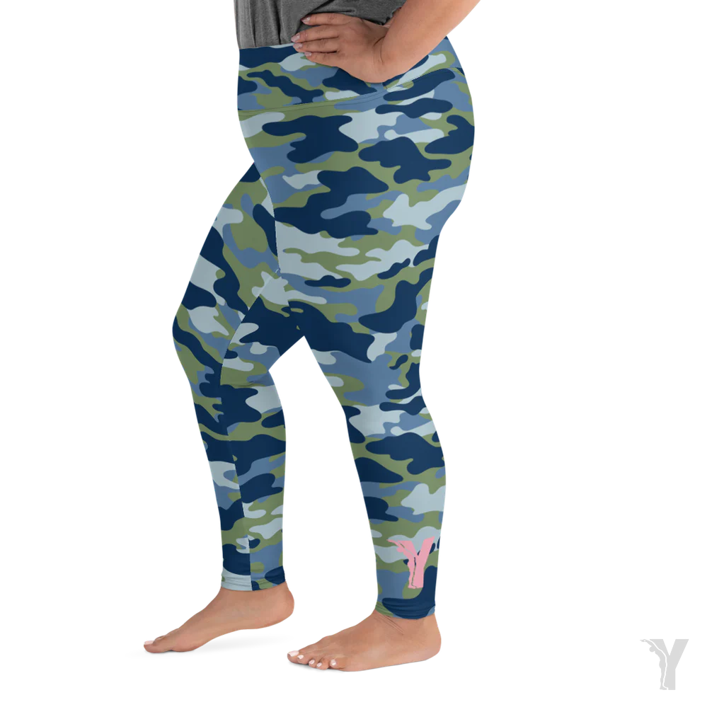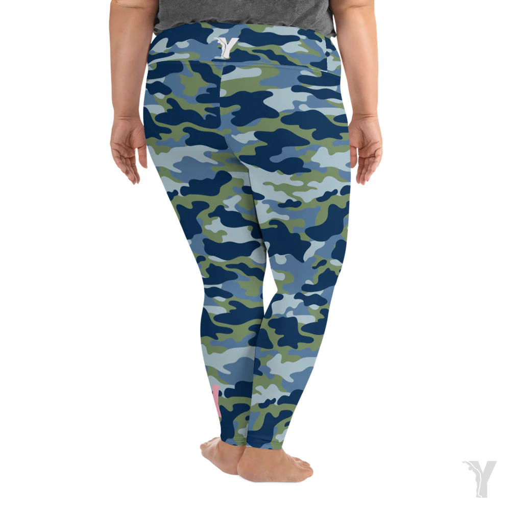 Le motif camouflage de ce legging est composé de bleu, bleu clair et vert. Le logo en blanc de Yofe est positionné discrètement sur la taille à l’arrière.