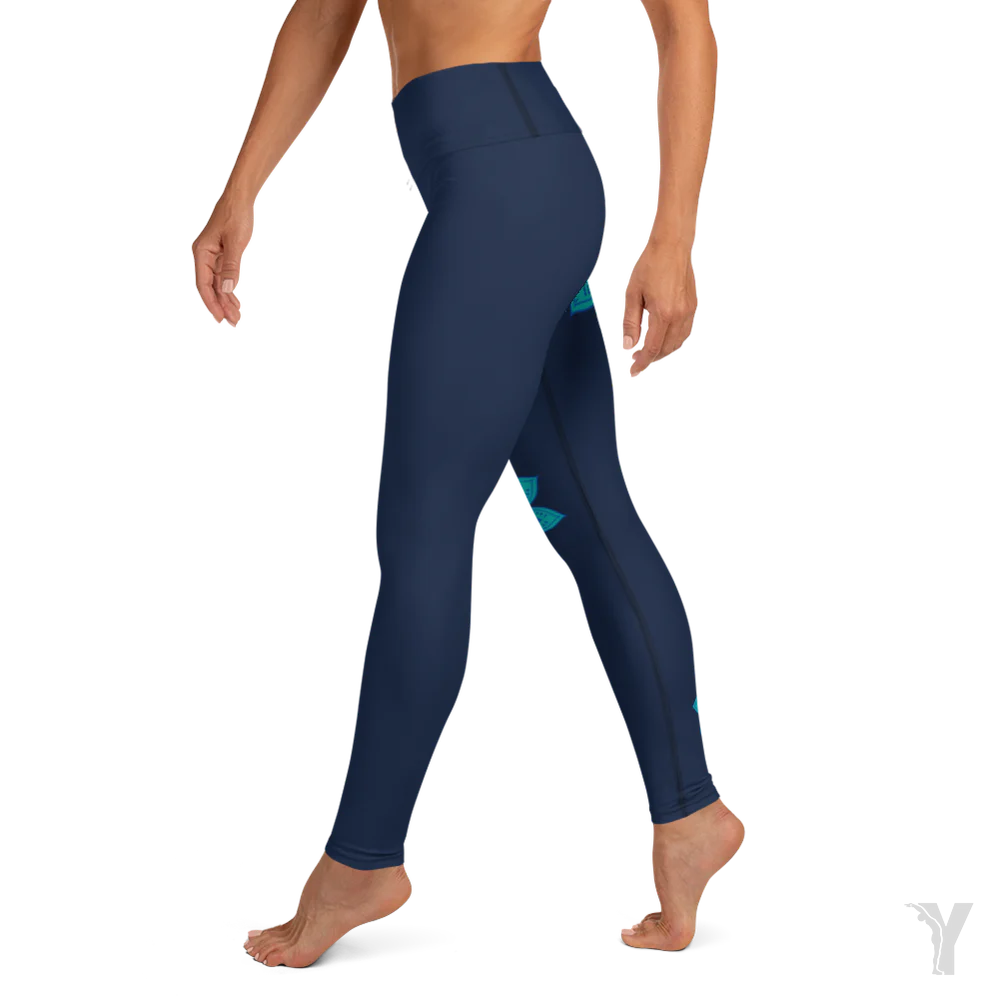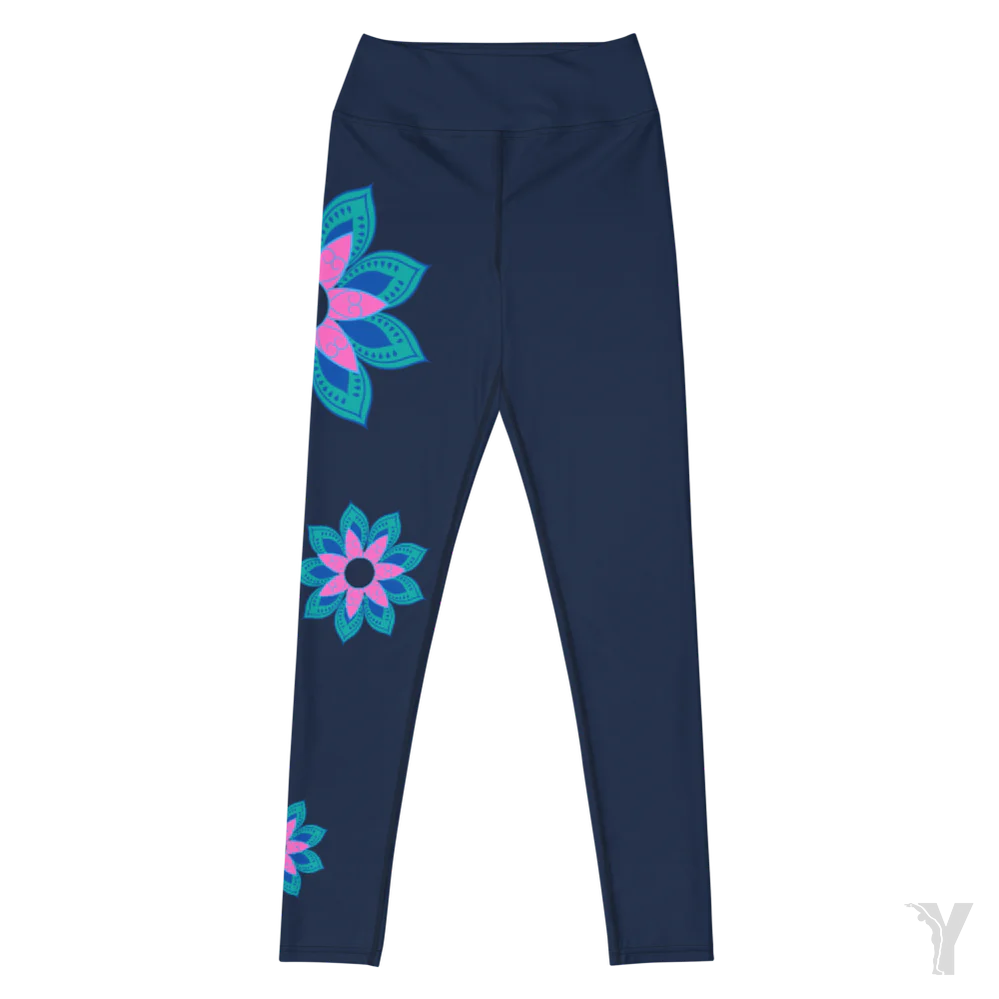 Ce legging de couleur bleu pétrole est agrémenté d’un joli motif de fleur.