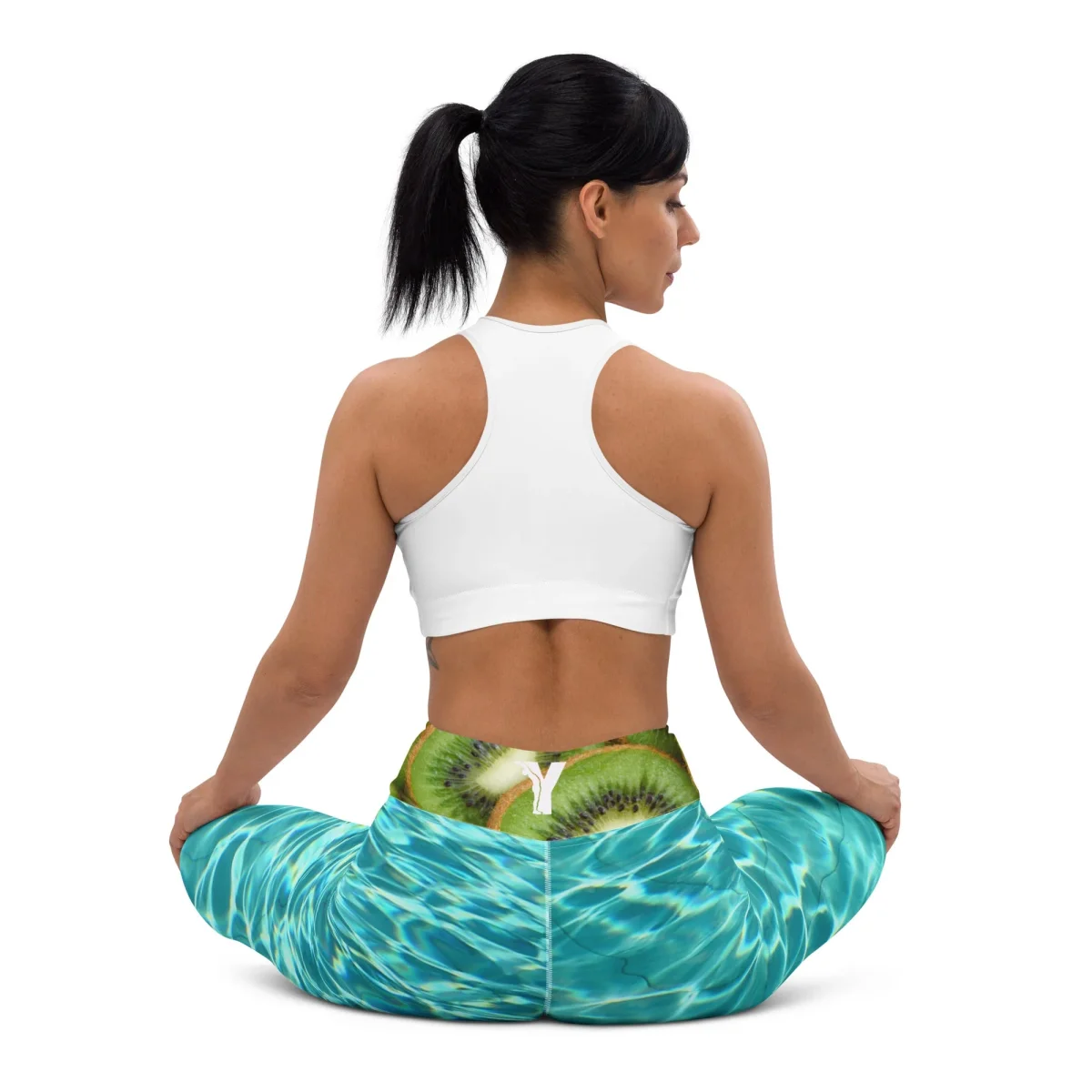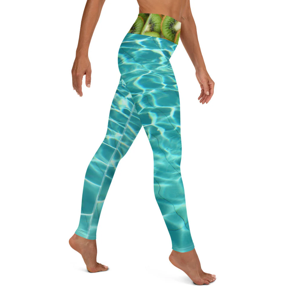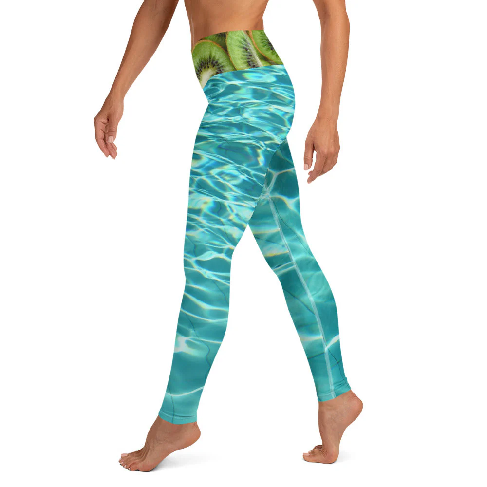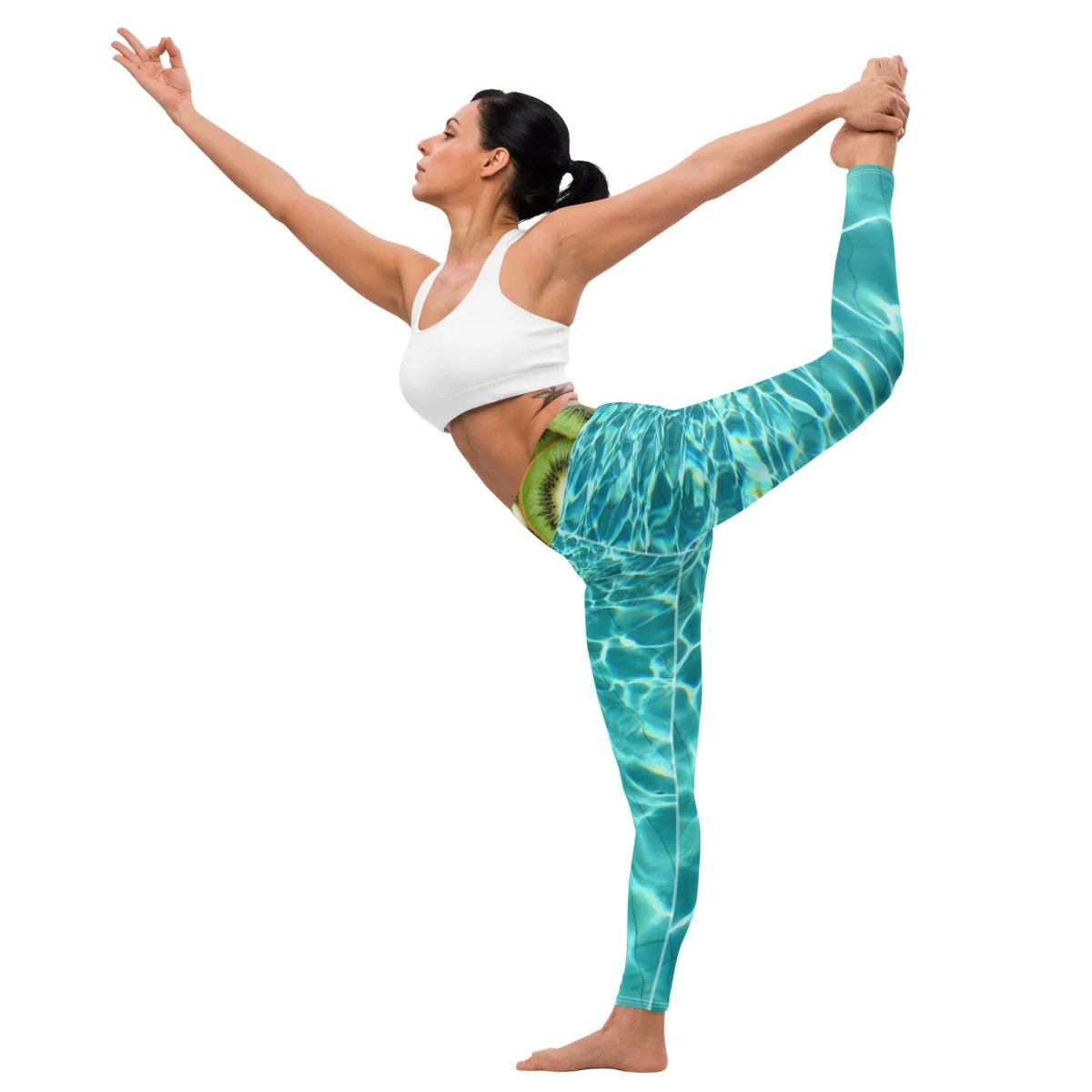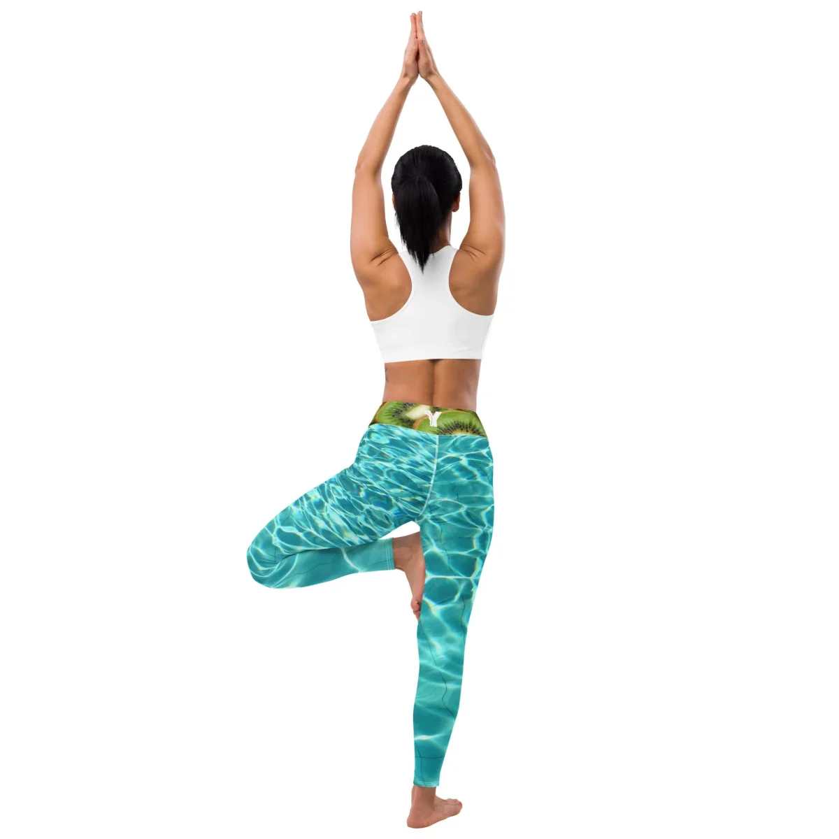 Ajoute une dose de fun et de fraîcheur à ta garde-robe avec ce legging « Kiwi Splash » unique en son genre ! Parfait pour te démarquer, ce modèle associe le bleu éclatant d’une piscine limpide à une ceinture haute à motif kiwi juteux. Oui, tu as bien lu : des kiwis ! 🍃🥝