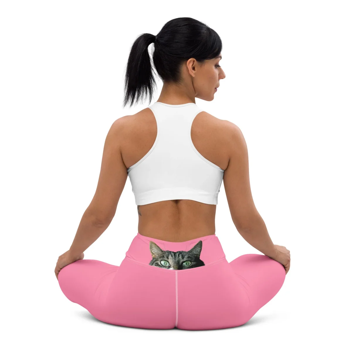 Ce legging rose vif se distingue par un design unique : un adorable chat qui te surveille malicieusement depuis l’arrière de la taille. Terminé les mateurs, gros chat monte la garde !