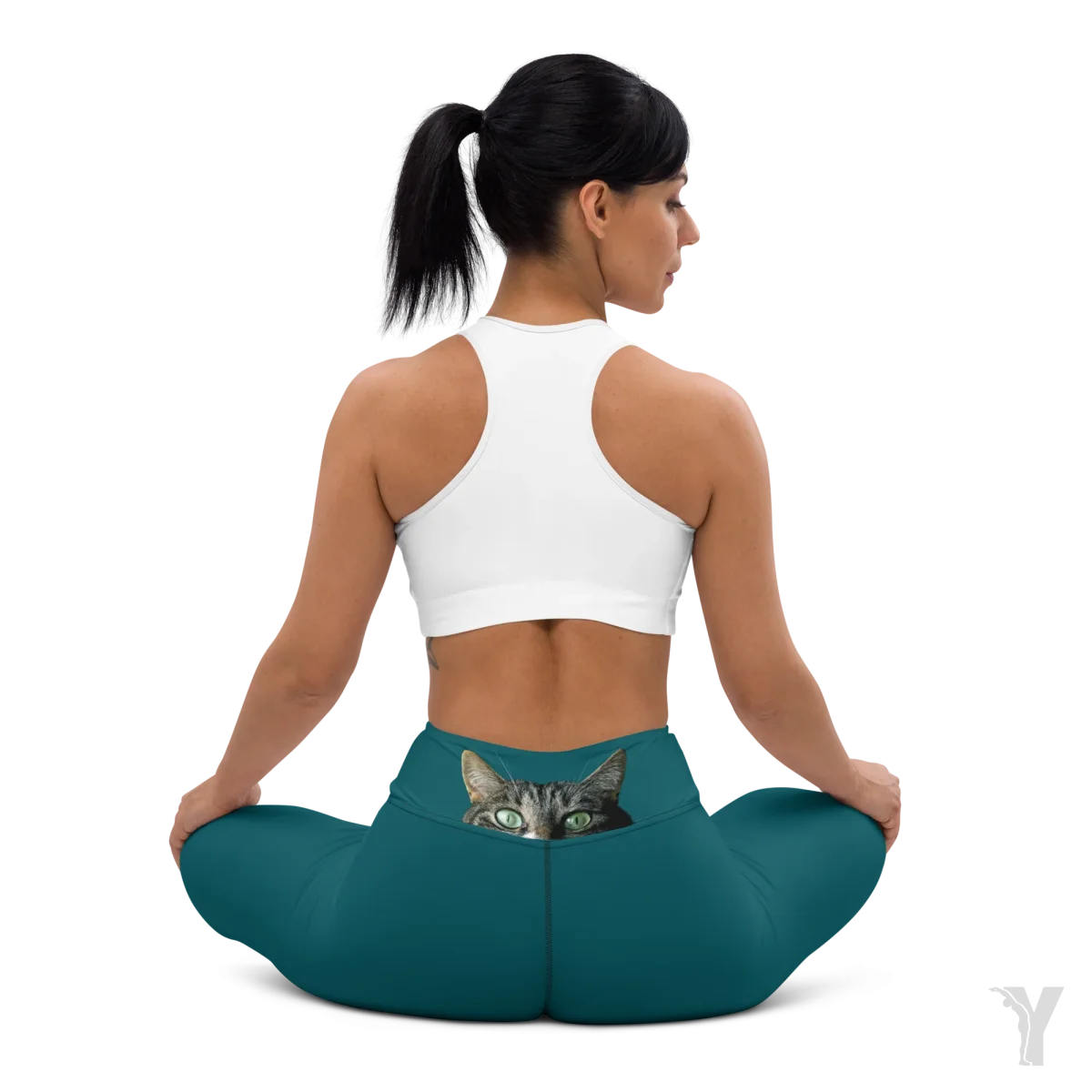 Par son tissu type peau de pêche, extensible, tu seras à l’aise dans ce legging de couleur vert. La tête de gros matou est imprimé sur la ceinture arrière, ainsi que le logo Y de Yofe sur la cheville gauche.
