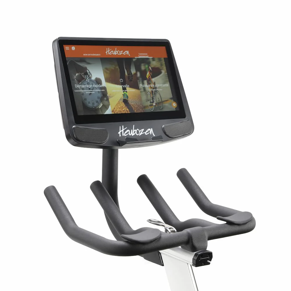 Il dispose d’une résistance magnétique motorisée avec 32 niveaux réglables via une console tactile de 15,6 pouces (39.6 cm) connectée à Netflix, YouTube, Spotify, Kinomap et Zwift. Son système Bluetooth permet le suivi cardiaque avec une ceinture incluse. Il propose 18 programmes d’entraînement adaptés à tous les niveaux.