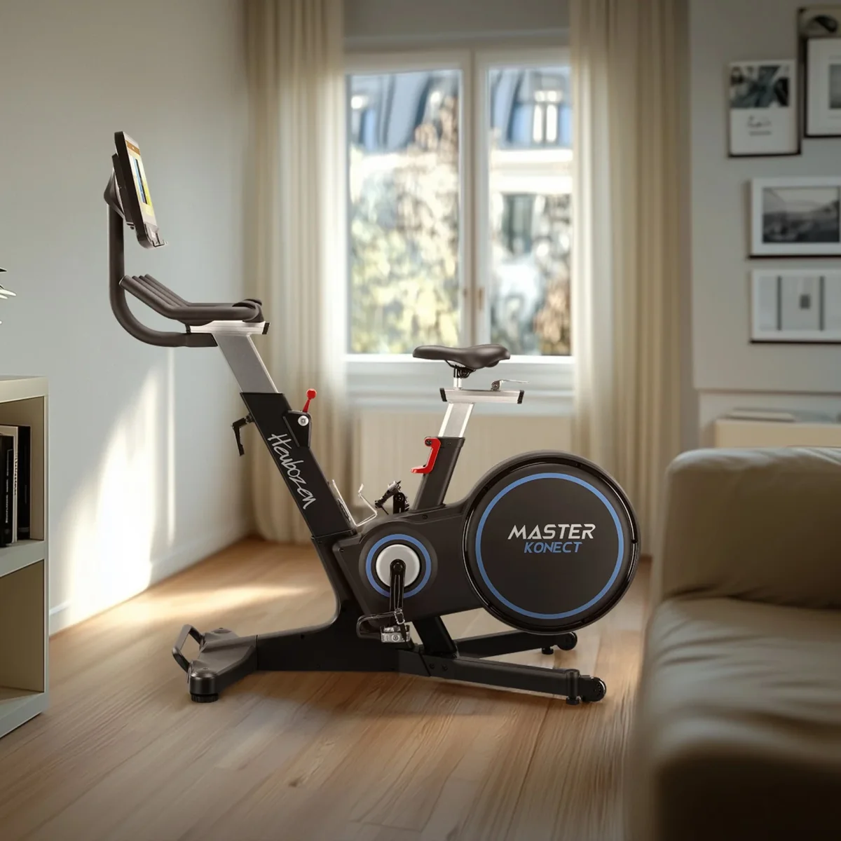 KINOMAP : Transformer votre vélo Master Konect en appareil de fitness puissant et amusant. Choisissez une vidéo parmi une large sélection et regardez votre icône avancer sur la carte. La résistance se change automatiquement en fonction du parcours choisi. Partagez vos performances avec la communauté et challengez vos proches grâce au mode multi-joueur.