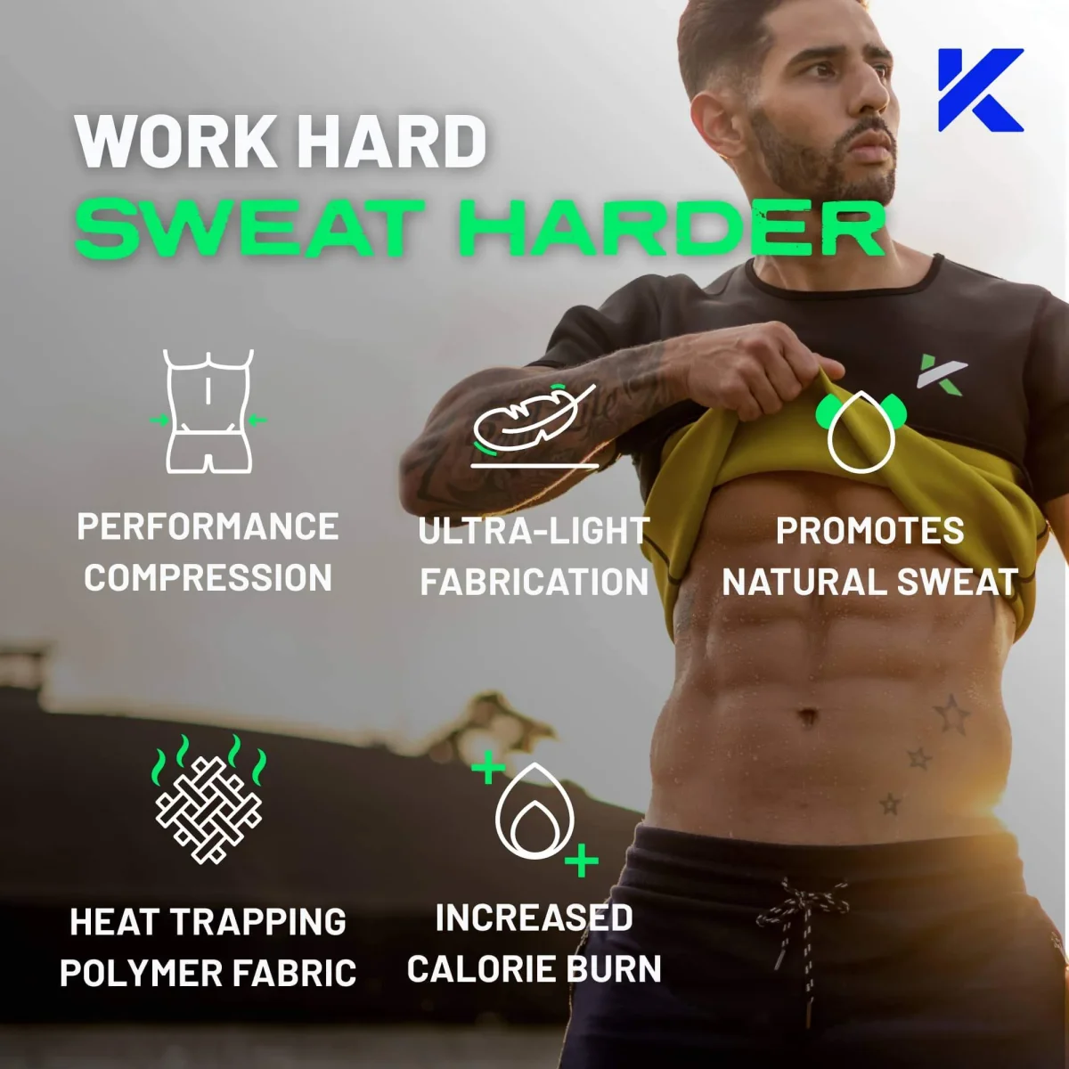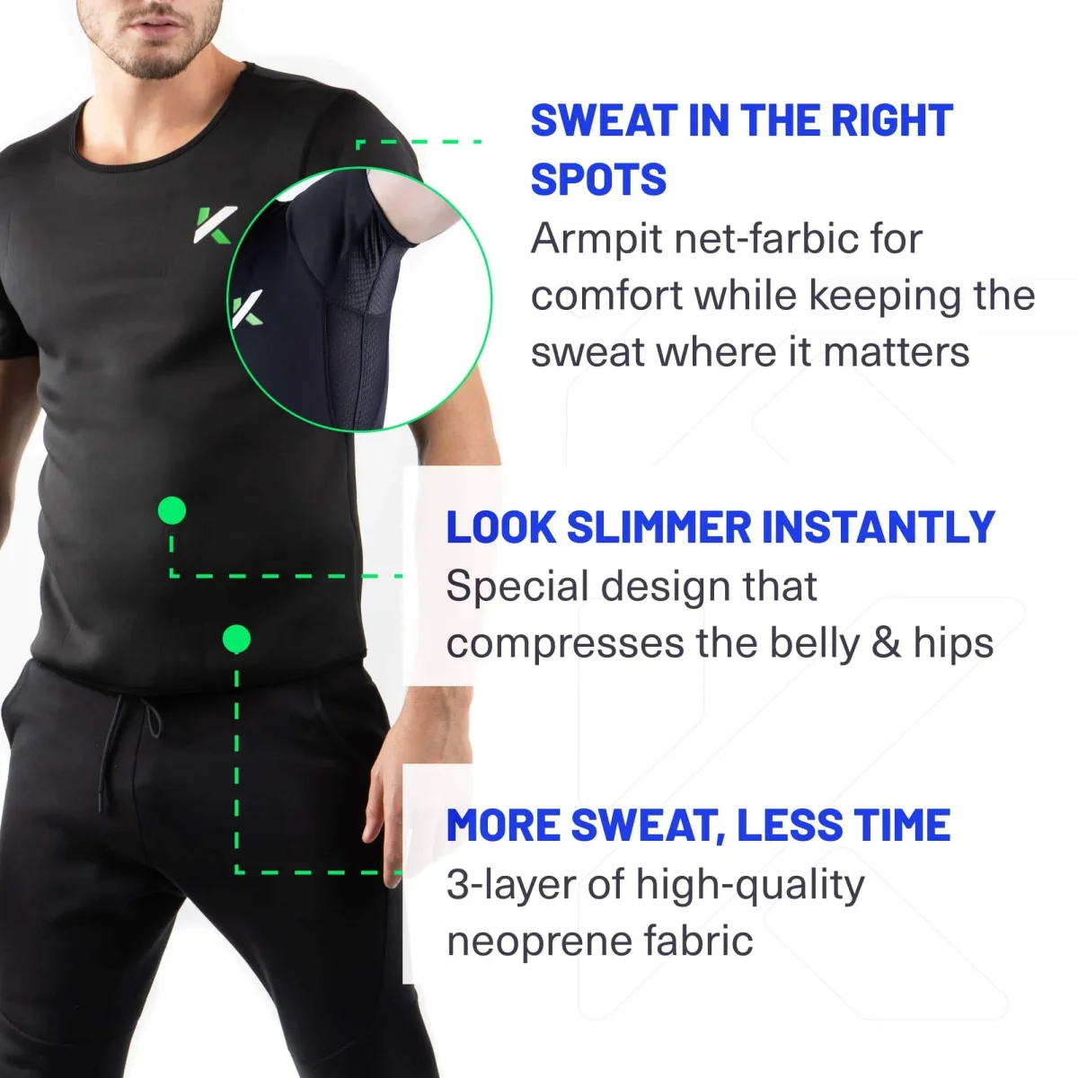 - Stimulates sweat during exercise 3x times more than normal clothing to aid in weight loss.