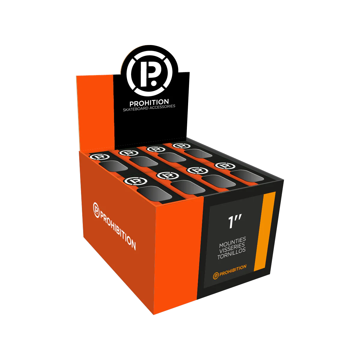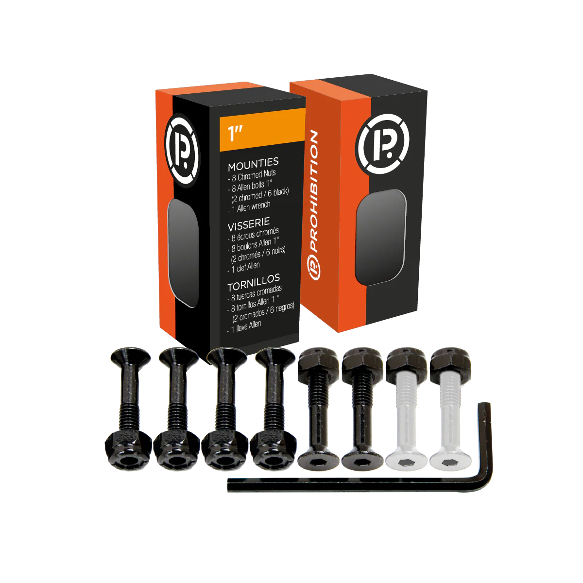 MOUNTIES SET 1 inch 8 black nuts 8 Allen flathead bolts (2 chromed + 6 black) 1 Allen wrench 3 lenght available : 7/8″, 1″, 1″1/8 (display contains 24 set)