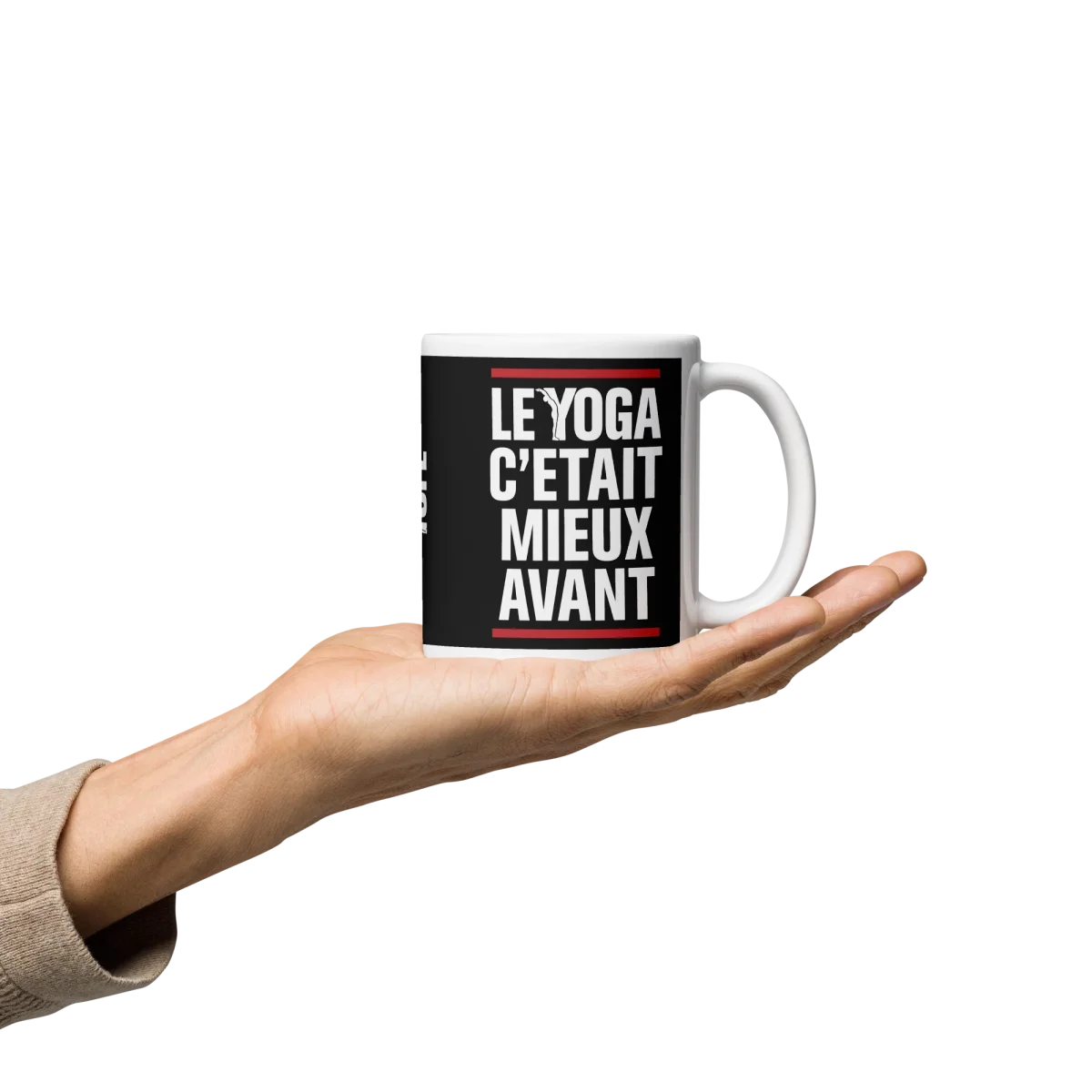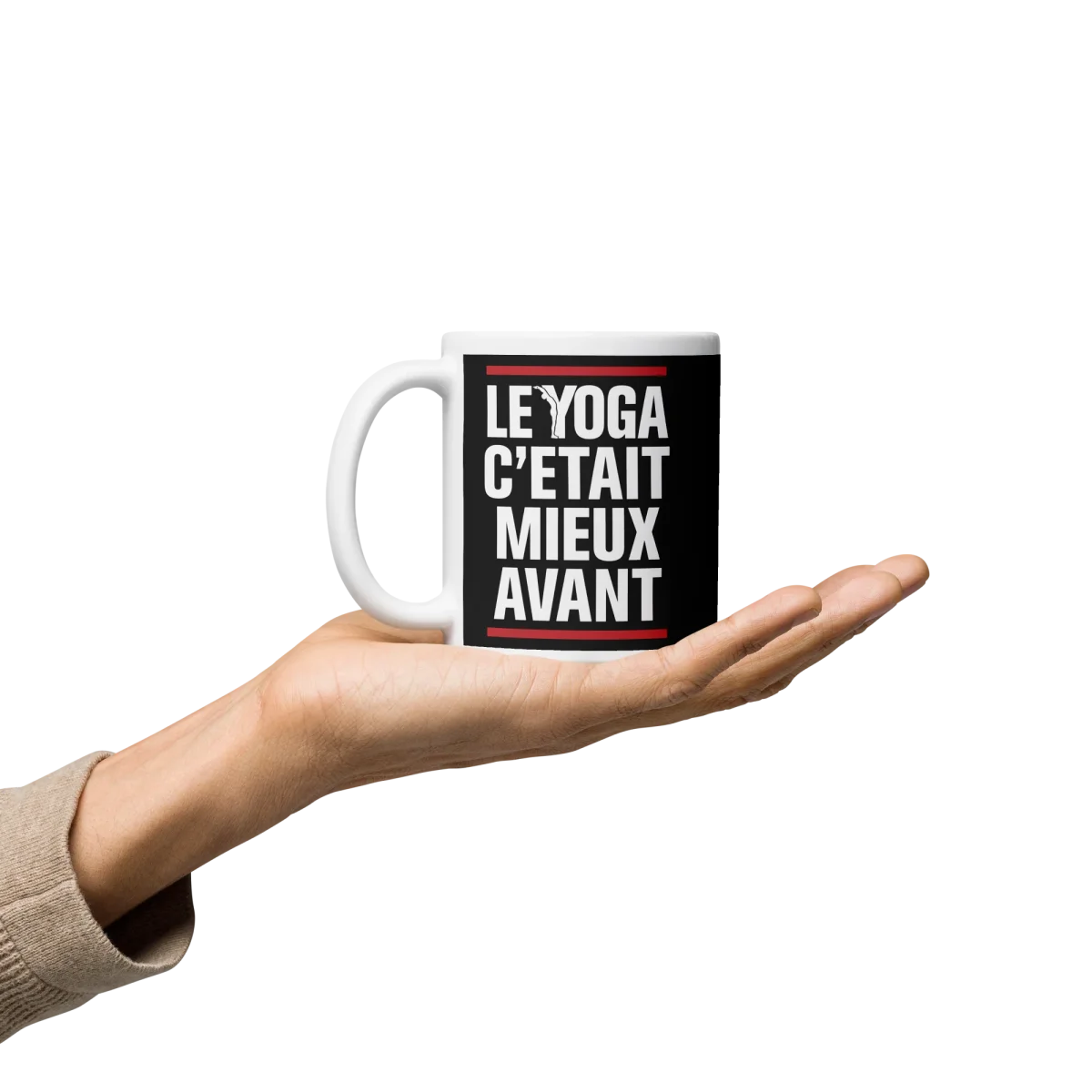 Notre tasse te permettra de signaler Ă qui veut l’entendre, qu’avant c’Ă©tait mieux ! Avec son fond noir et sa phrase en blanc (inscrit des deux cotĂ©s), ce mug pour yogi convaincu peut te servir Ă dĂ©guster un cafĂ© ou boire ton thĂ© matinal.