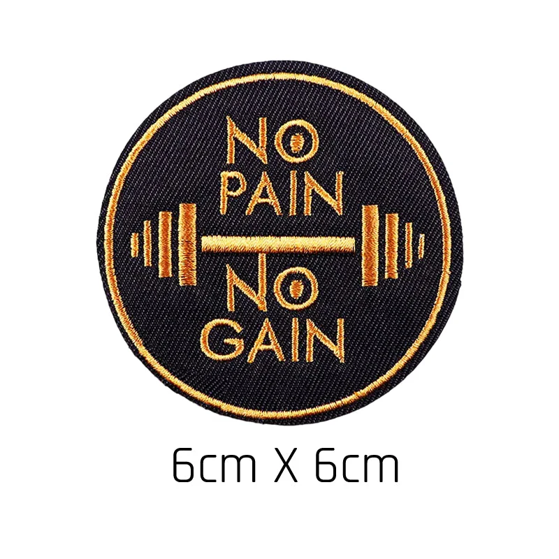 "No Pain No Gain" Patch with velcro so you can personalize your Gympack backpack. Dimensions: 6 x 6 cm