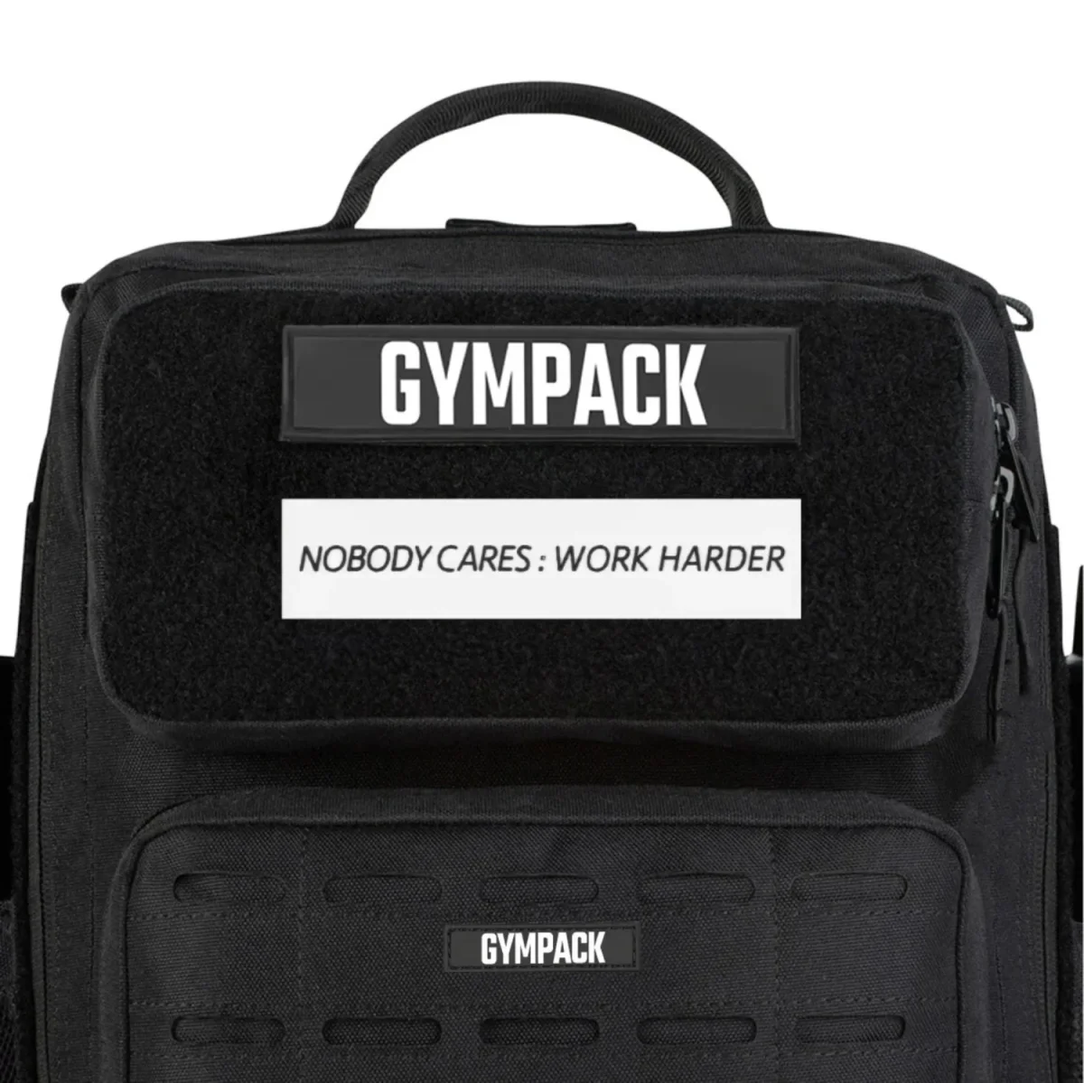 Nobody Cares: Work Harder Velcro patch to personalize your Gympack.