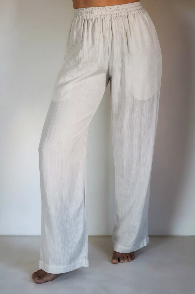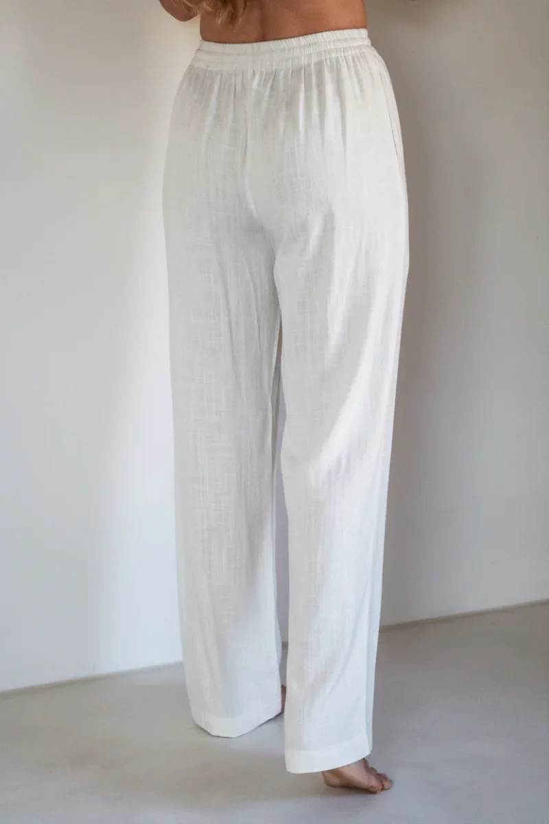 Le pantalon ANAYA en lin et viscose, couleur blanc naturel, allie décontraction et style soigné au quotidien. Sa coupe droite à taille haute offre un tombé naturel et fluide, avec une aisance parfaite pour se déplacer librement, en ville, en bord de mer ou pour vos sorties après le travail. Polyvalent, il se porte avec un top léger ou une chemise pour un style casual chic, un incontournable du prêt-à-porter féminin.