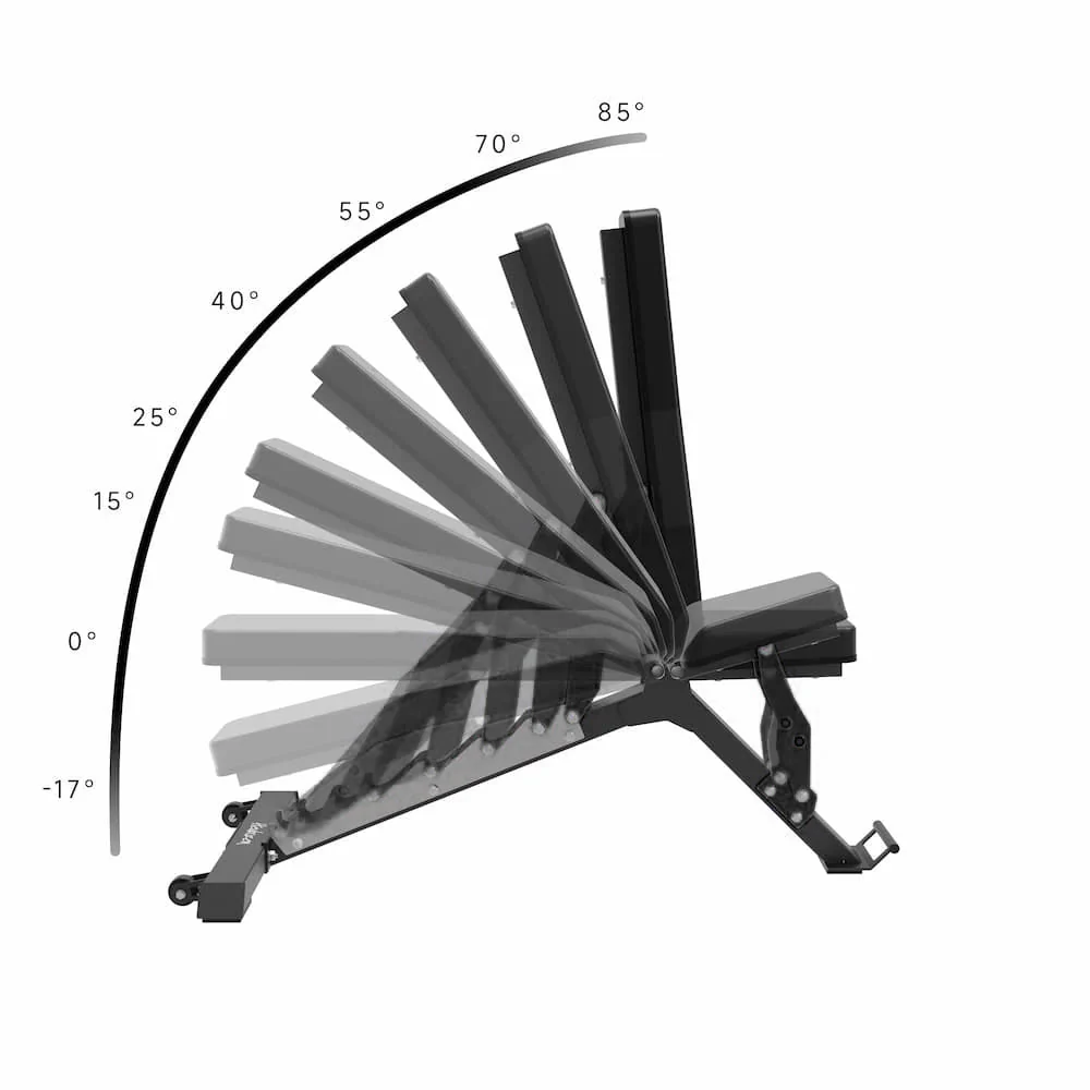 Votre sĂ©ance devient complĂ©ment personnalisĂ©e avec les 8 niveaux d’inclinaison du dossier (85°, 70°, 55°, 40°, 25°, 15°, 0° et -17°) pour cibler diffĂ©rents groupes musculaires, tels que les abdominaux, les pectoraux et les Ă©paules.