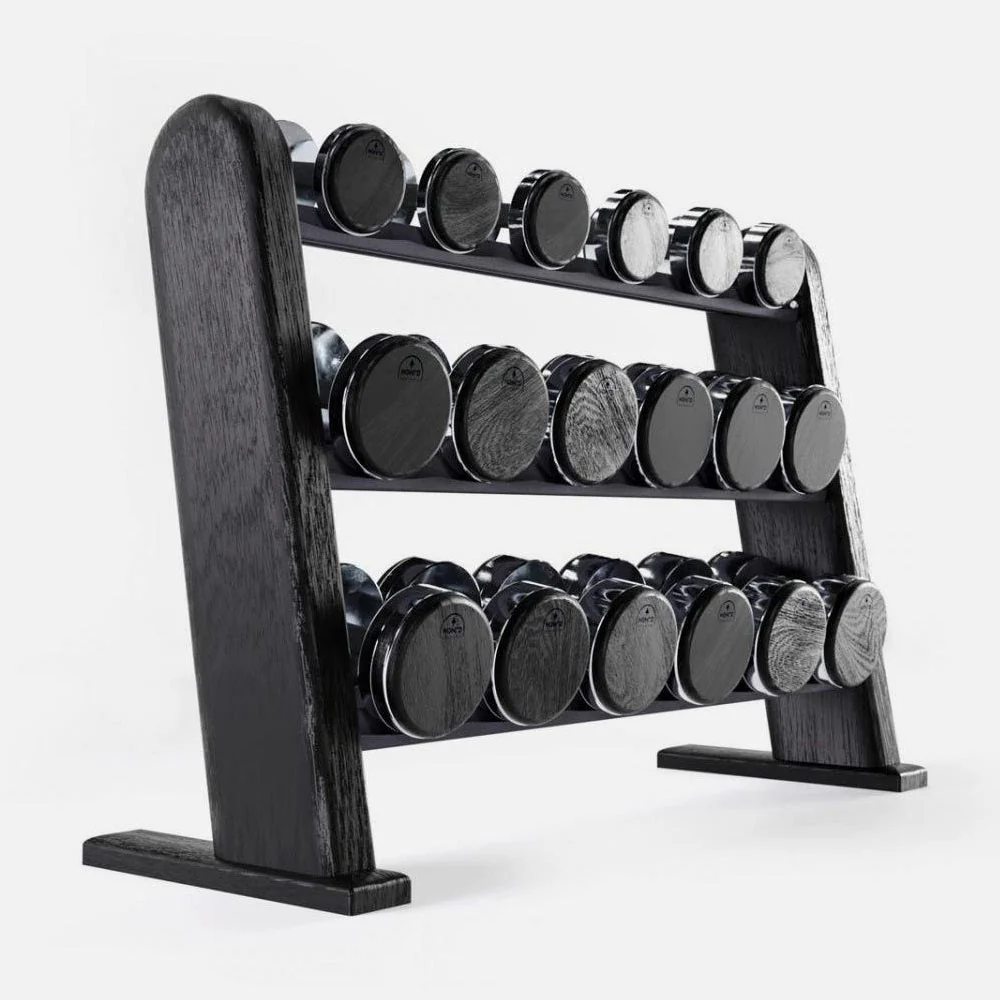 Le rack DumbBells en bois massif de NOHRD est conçu pour offrir une expĂ©rience d’entraĂ®nement alliant performance et esthĂ©tique. Les haltères permettent de rĂ©aliser diffĂ©rents exercices afin de cibler des groupes musculaires tels que la ceinture abdominale, les dorsaux ou les lombaires. Ils sont idĂ©aux pour le renforcement musculaire.