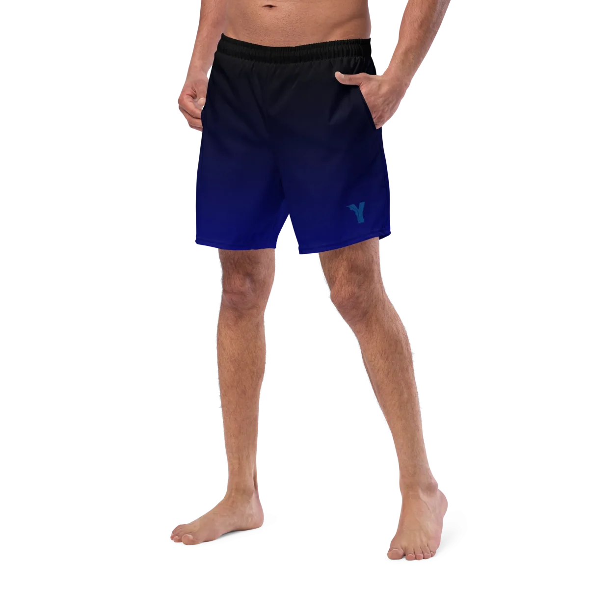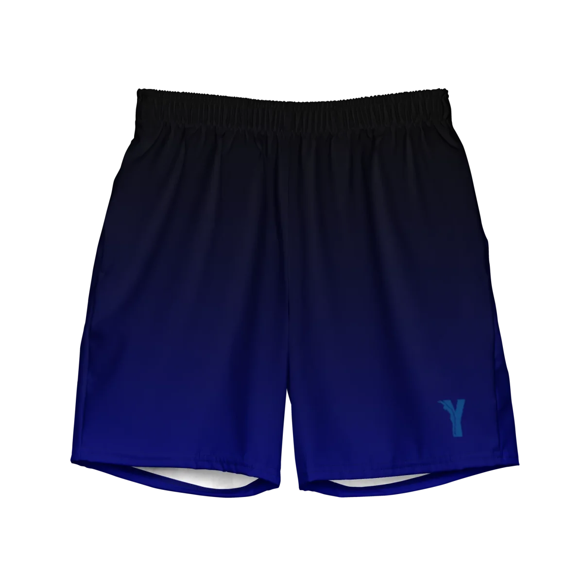 il sèche rapidement et est respirant. Notre short de couleur noir dégradé bleu est doté de multiples poches pour tes affaires et dispose d’une doublure intérieure soyeuse et anti-irritations. Le logo Y, en bleu clair est positionné sur la cuisse gauche