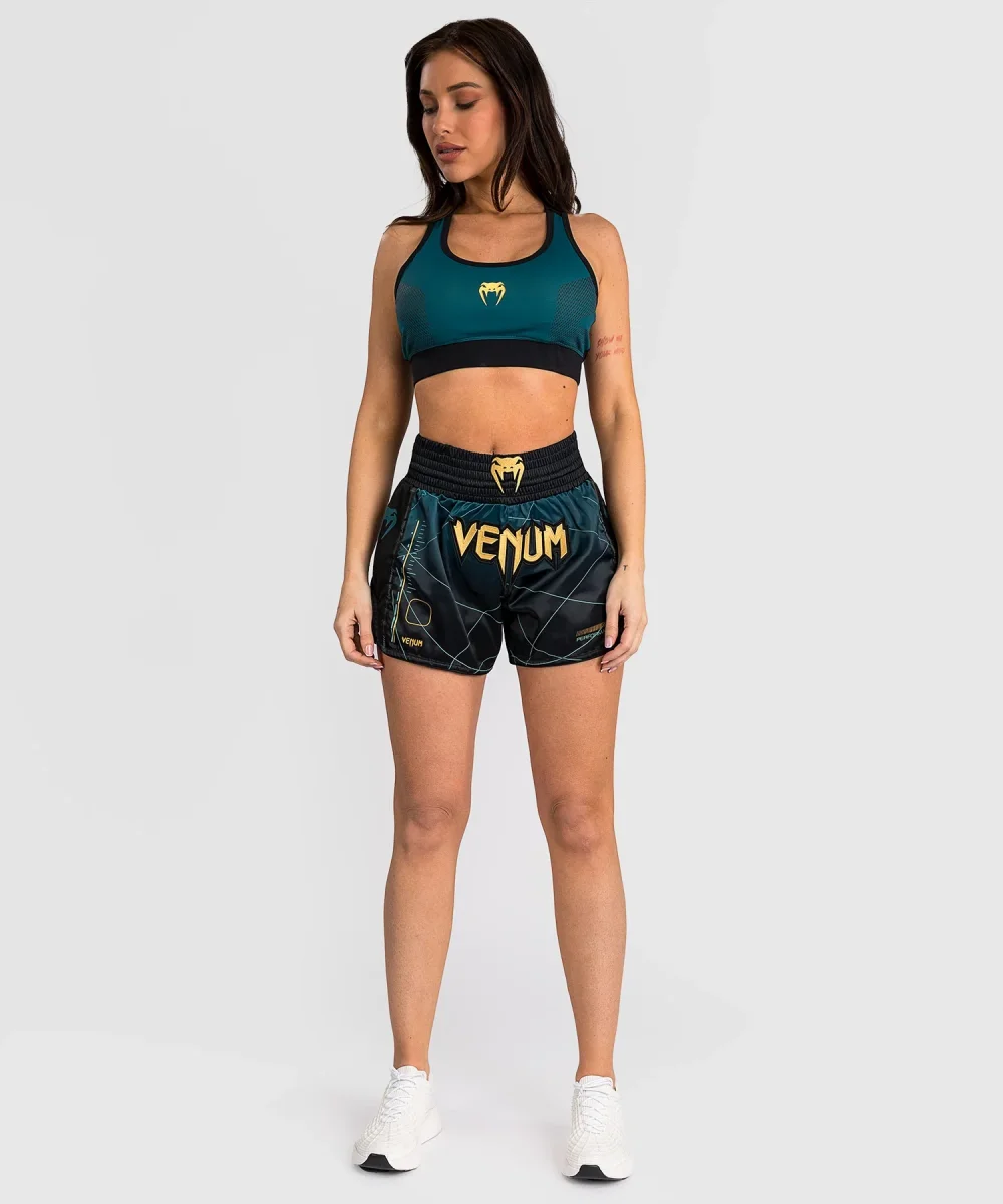 Ce short Muay Thai distinctif a été conçu avec un effet subtil d’ombre accentué par des lignes colorées dynamiques et des touches d’or. Les logos Venum apparaissent sur le devant et les côtés du short ainsi qu’au niveau de la ceinture. Que ce soit en salle de sport ou sur le ring, le Tactical XT est conçu pour les femmes qui considèrent le combat à la fois comme un art et comme une mission.