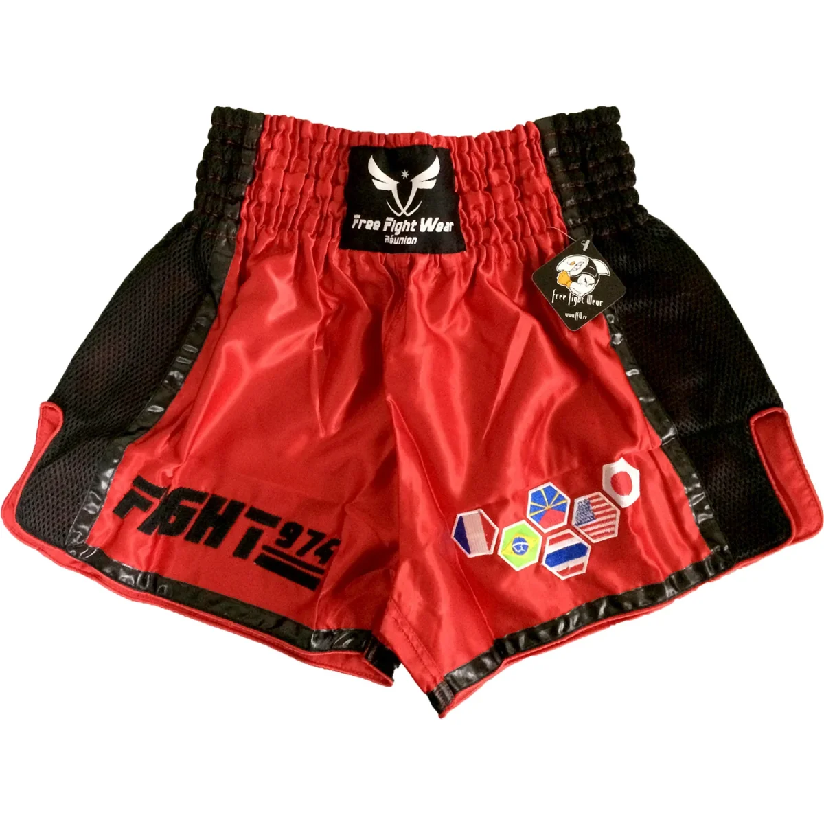 Short Multiboxe FREE FIGHT WEAR noir/rouge Excellent short idéalement conçu pour la pratique du kick boxing ou du K1 en loisir ou en compétition à un prix imbattable. Petit clin d’oeil au 974, une terre de champions!