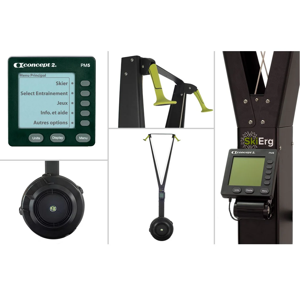 Le moniteur PM5 dispose de différents modes d’affichage (courbe de force, histogramme, guide d’allure, écran loupe ou affichage complet), permet de créer des entraînements personnalisés et d’enregistrer les données de vos entraînements. Afin d’apporter une touche ludique à vos entraînements, le moniteur PM5 contient des jeux (jeu de poissons, entraînement ciblé, jeu de fléchettes et biathlon.