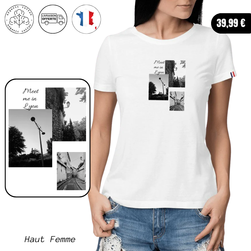 T-Shirt Bio » Meet me in Lyon »- 🇫🇷 Made in France 🇫🇷 – Femme