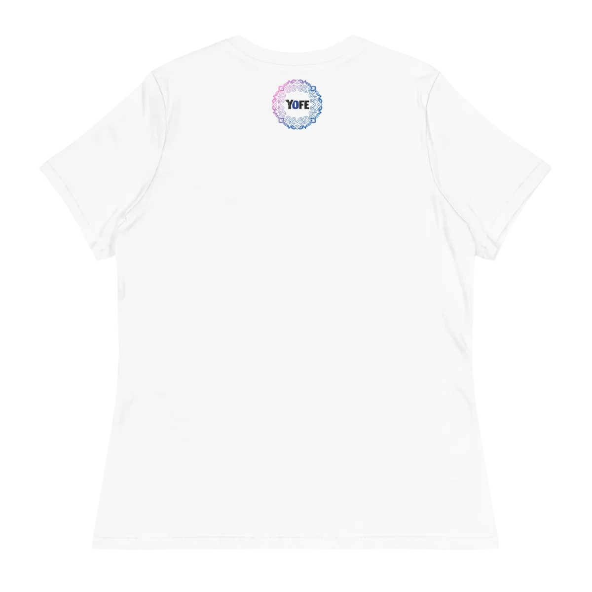 Ce t-shirt blanc a une jeune femme en méditation brodé en rose, et un mandala dans le cou