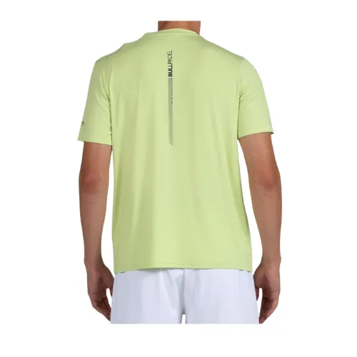 T-shirt Bullpadel Lande Limon Vigore : tissu Drynamic séchage rapide, matière stretch, design sublimé & perforations dorsales. Confort et style pour padel intensif.
