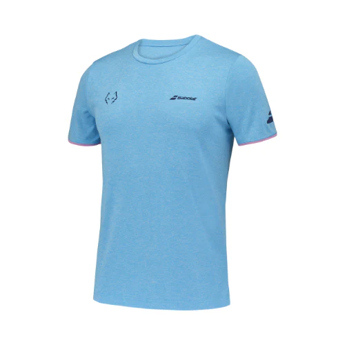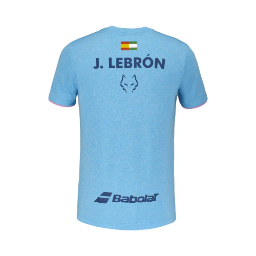 T-shirt Babolat Crew Neck Lebrón Cyan — design élégant signé Juan Lebrón, tissu FiberDry en polyester recyclé et coupe biotechnologique 360 Motion pour un confort optimal et une liberté de mouvement totale.