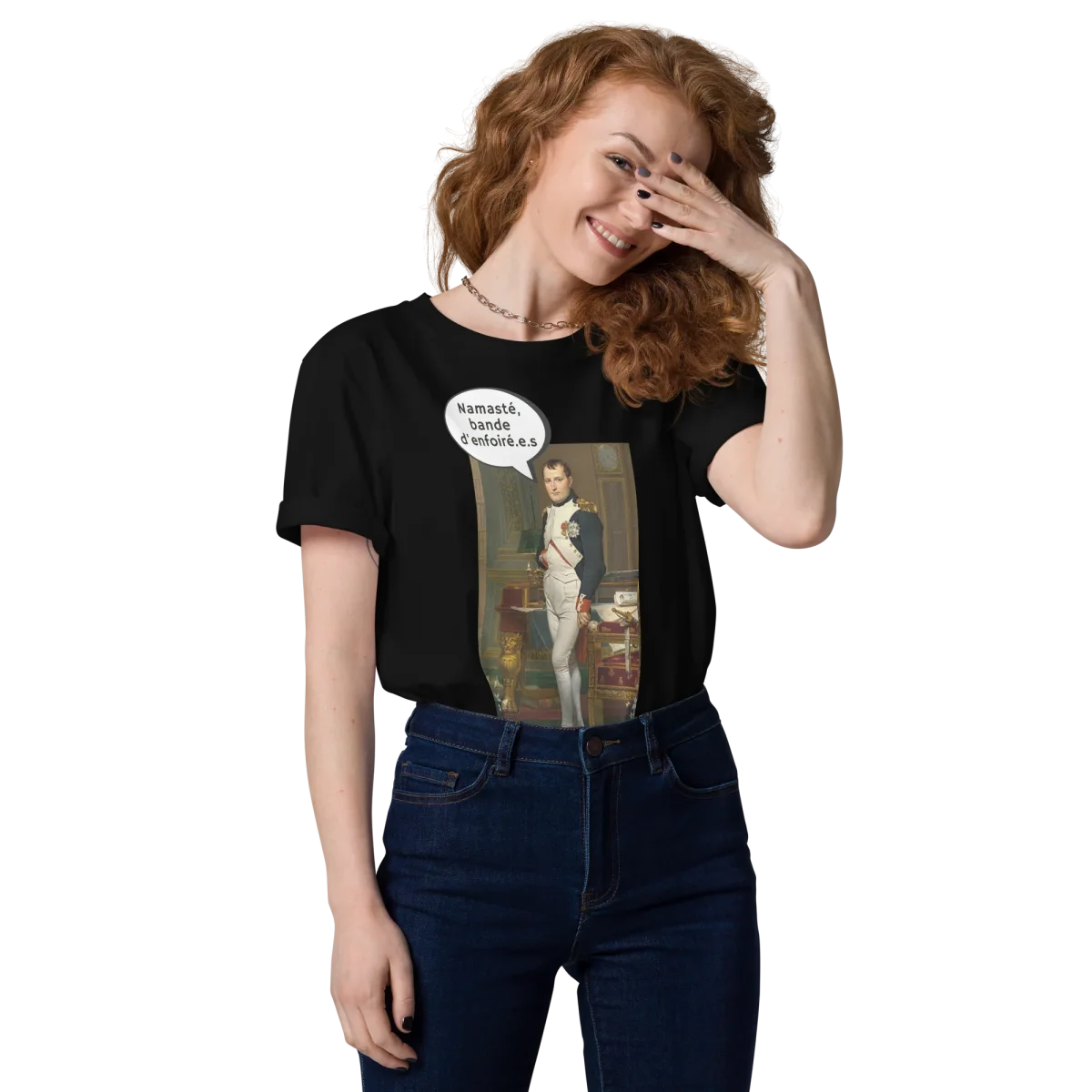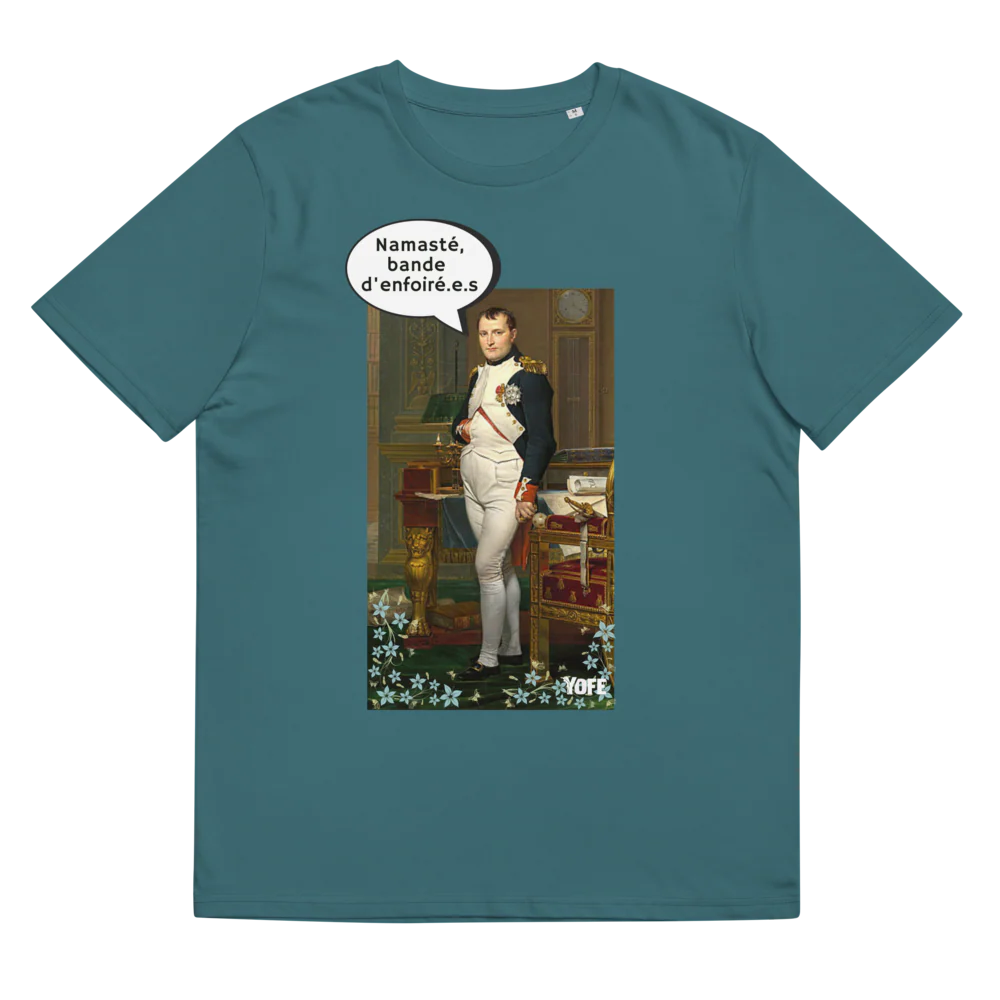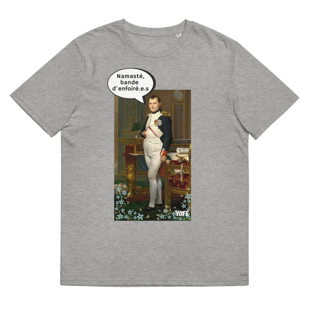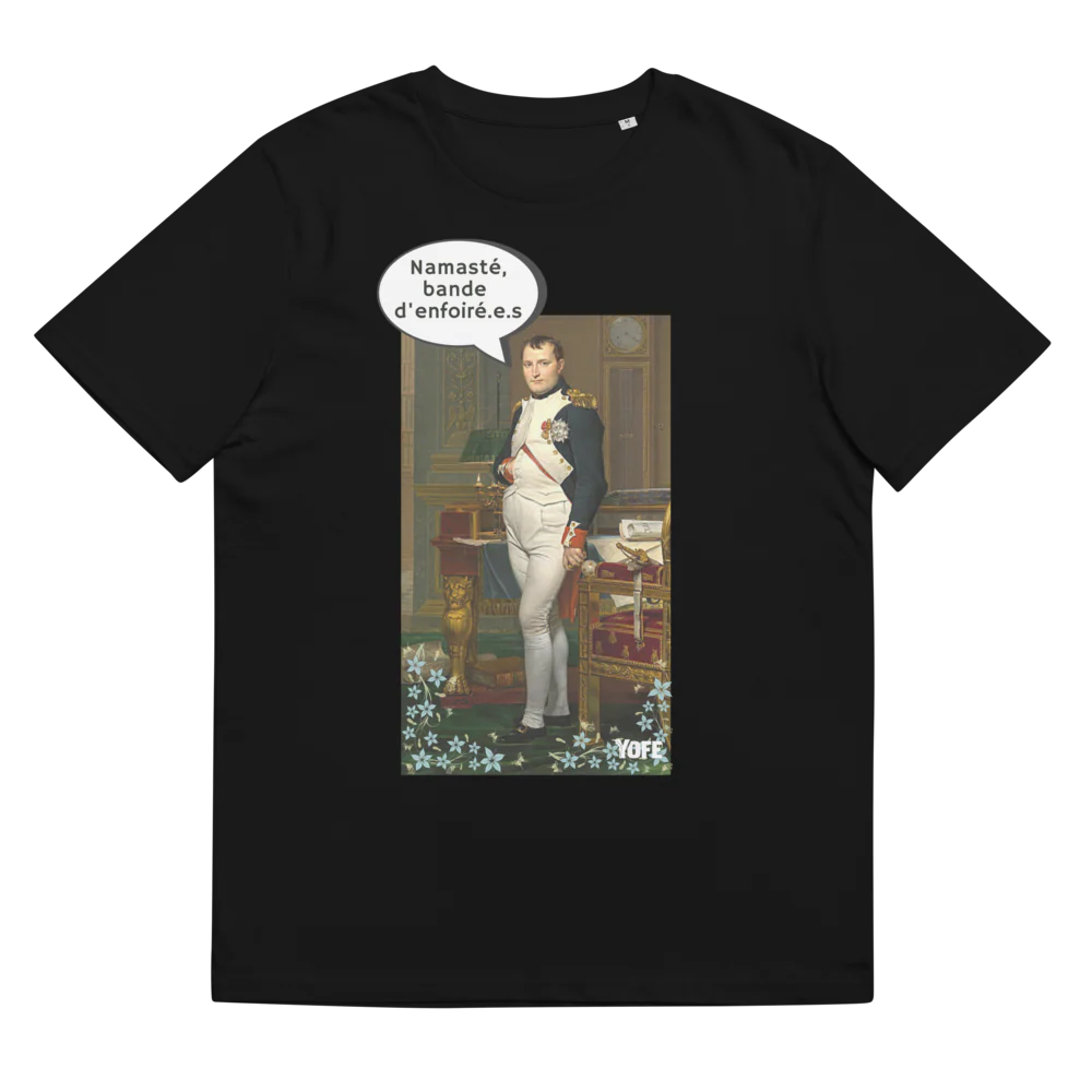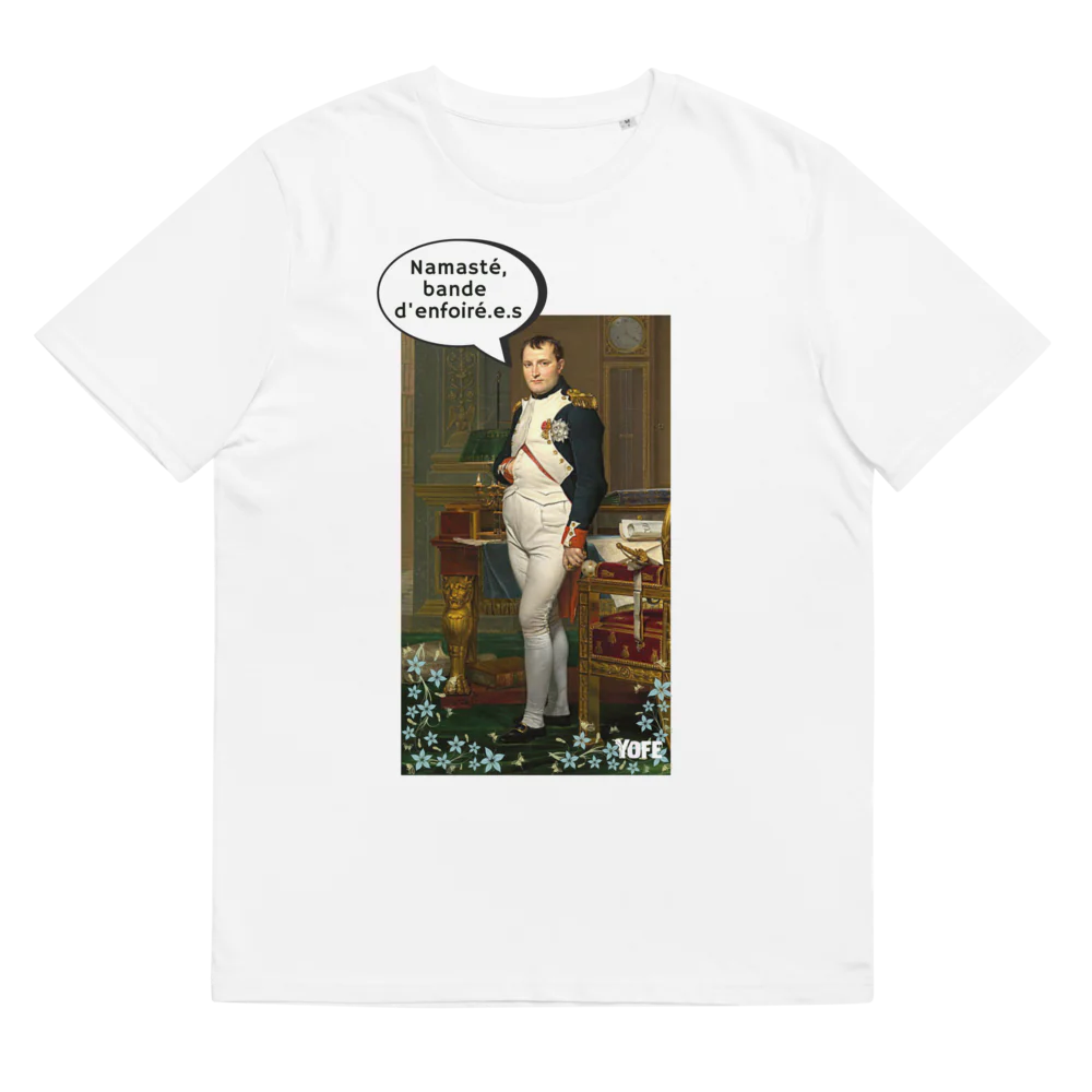Napoléon pratiquait il le yoga ? Pour être empereur, il faut surement une certaine dose de calme et de tranquillité d’esprit. Retrouve le modèle Namasté bande d’enforé.e.s avec notre cher consul. Fabriqué en coton biologique, ce beau T-shirt fera de toi une Joséphine moderne.