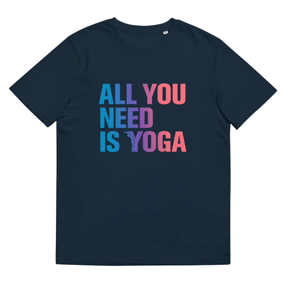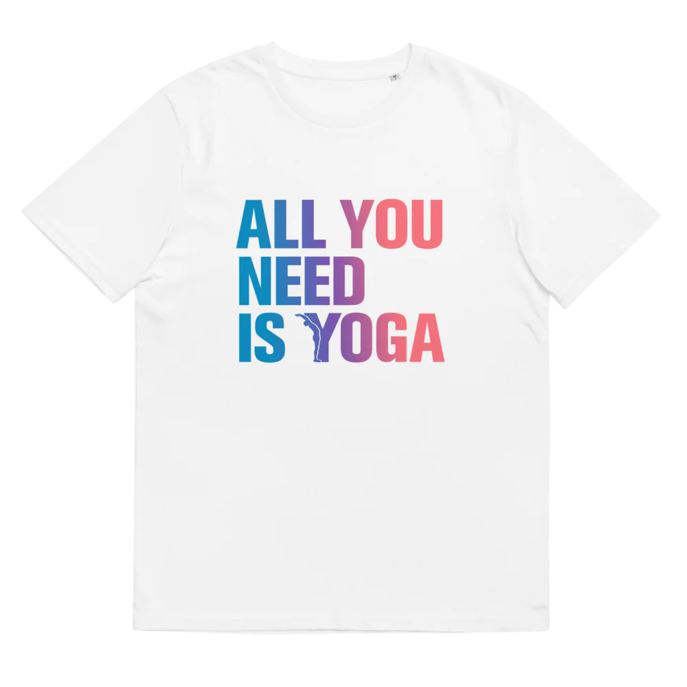 Un message simple et efficace “All you need is Yoga” qui se traduit littéralement par “Tout ce dont tu as besoin, c’est du yoga”. Tout le monde saura que tu préconises la pratique du yoga !