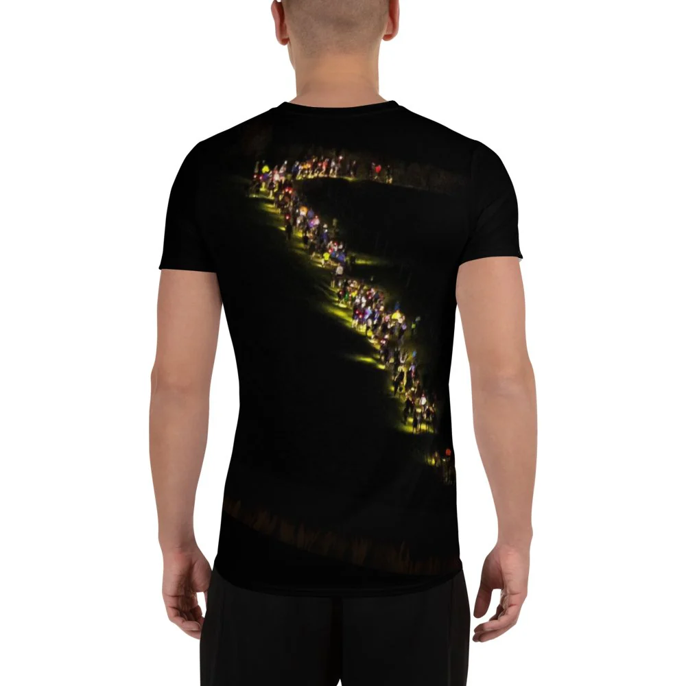 Quoi de mieux qu’un T-Shirt Running qui exprime l’essence même du trail ! La nuit, ses ombres, ses lumières, ses vapeurs !
