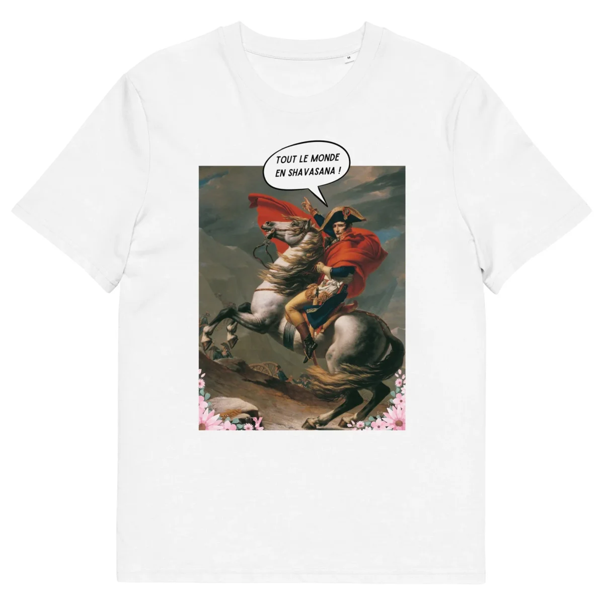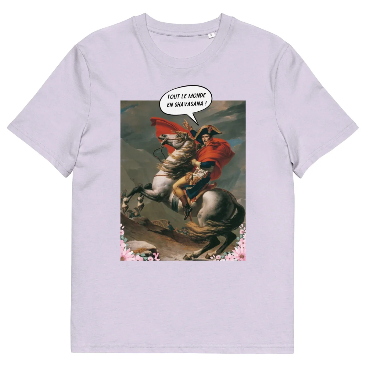 Sur un fond de tableau historique, Napoléon devient le maître zen, te guidant vers la relaxation ultime ! Ce t-shirt est disponible en noir, blanc, rose et mauve, pour s’adapter à tous les styles.