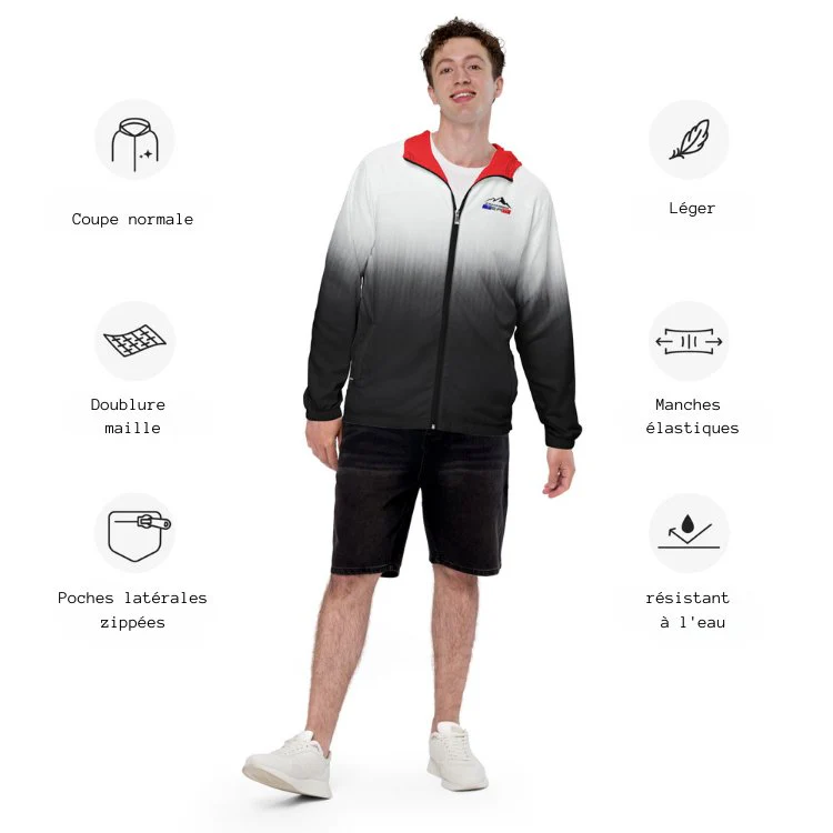 Ce coupe-vent léger assure un confort maximum lors des journées venteuses, pluvieuses, grâce à son tissu résistant à l’eau et à sa doublure en maille respirante.