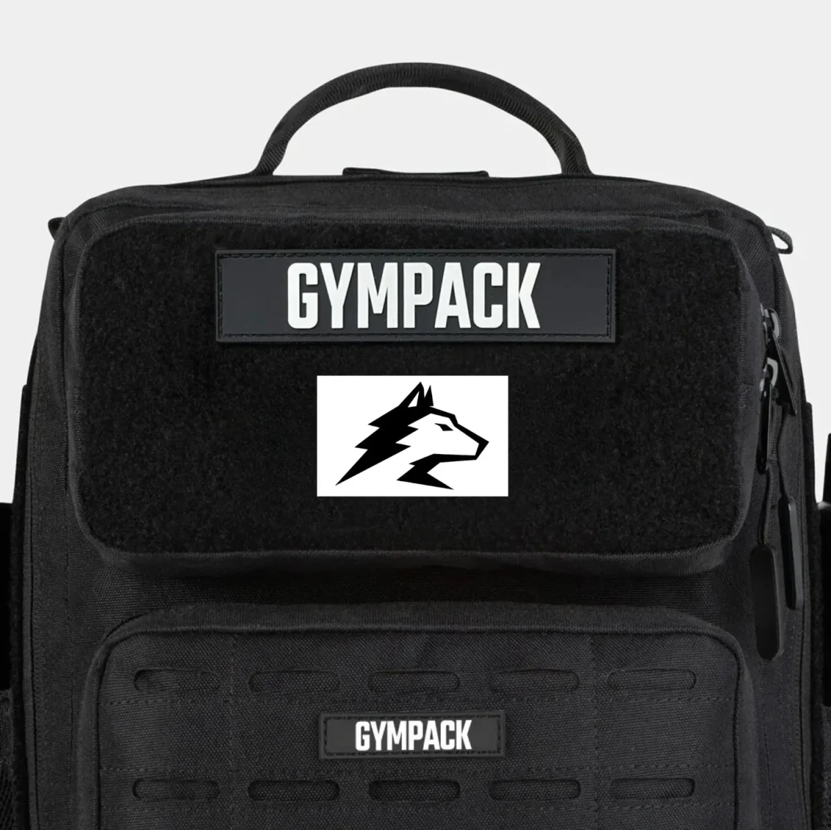 White Gympack Wolf Patch with velcro so you can personalize your Gympack backpack.
