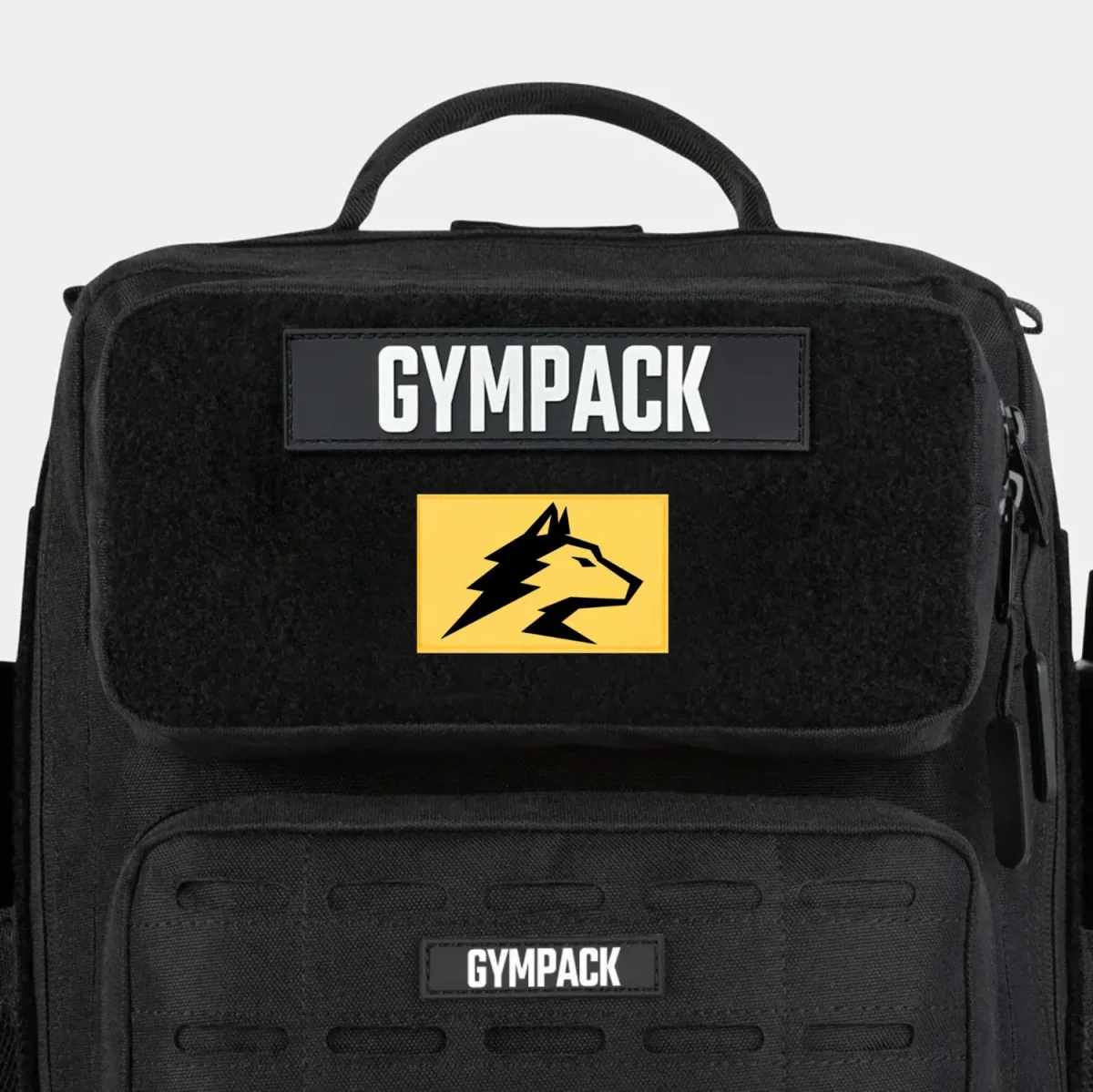 Yellow Gympack Wolf Patch with velcro so you can personalize your Gympack backpack.