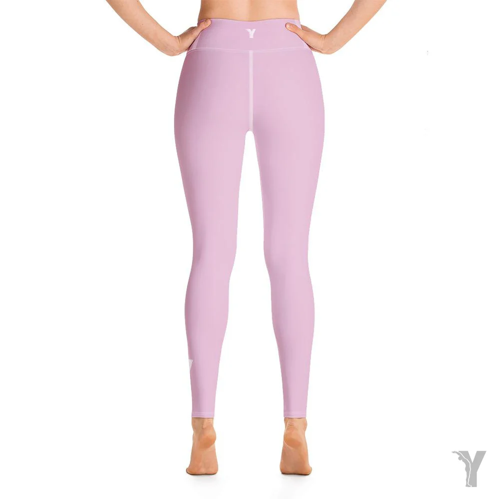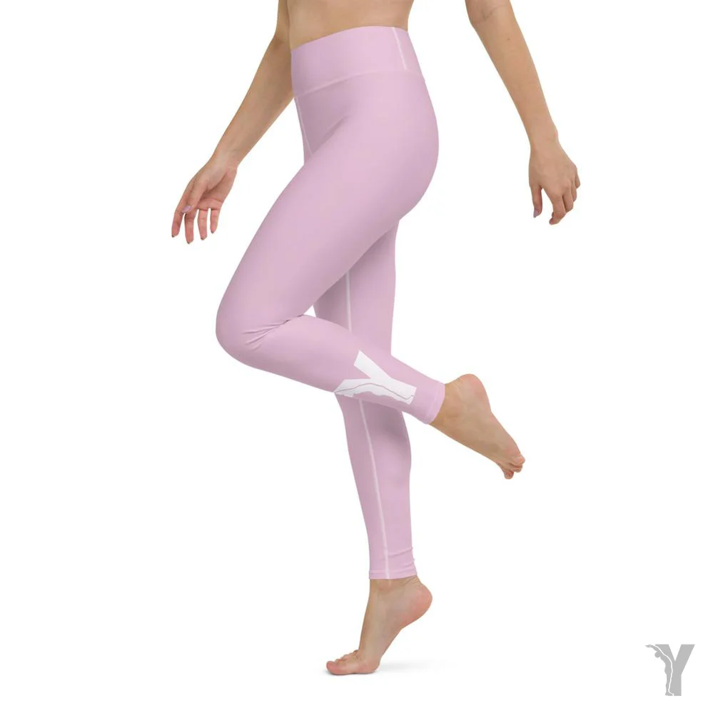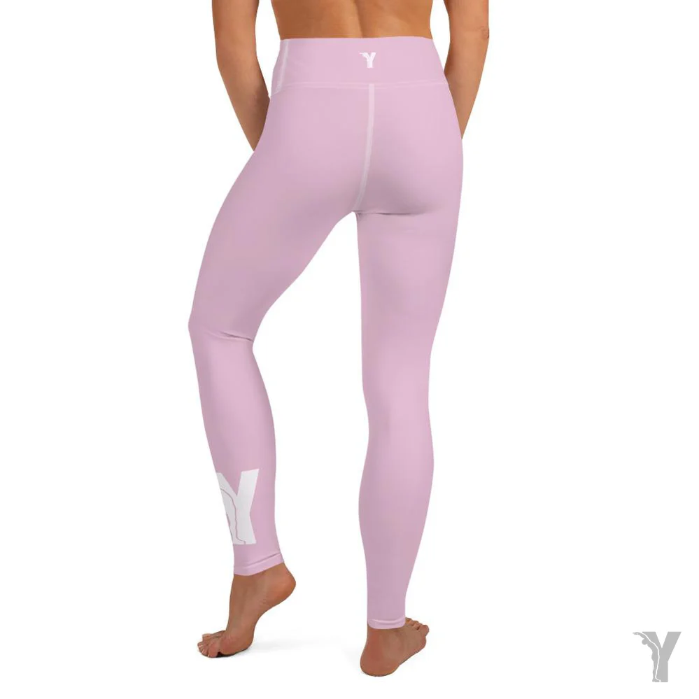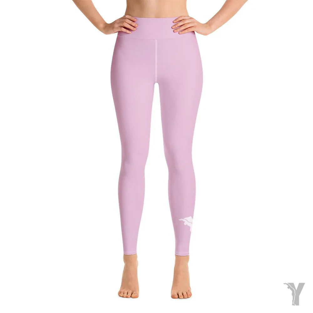 Ce yoga pant rose est avec imprimé du logo Yofe Yoga au niveau du mollet.