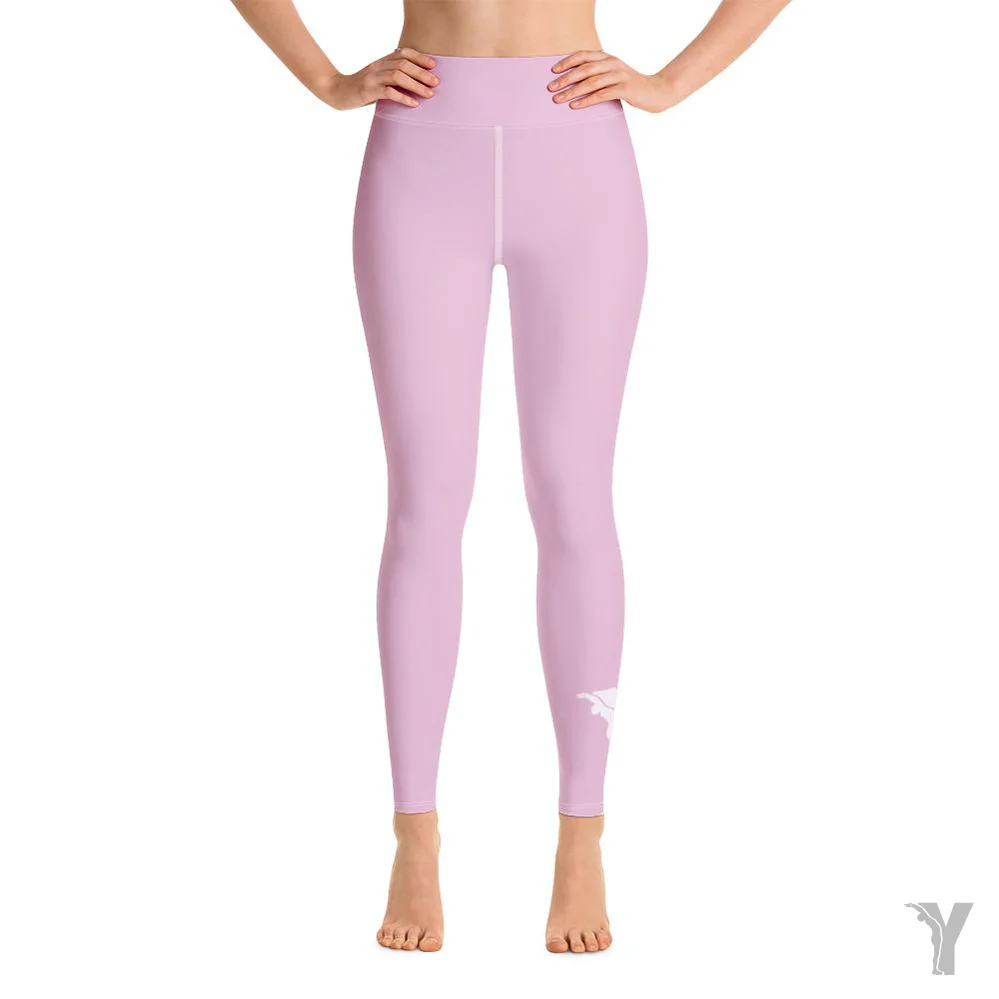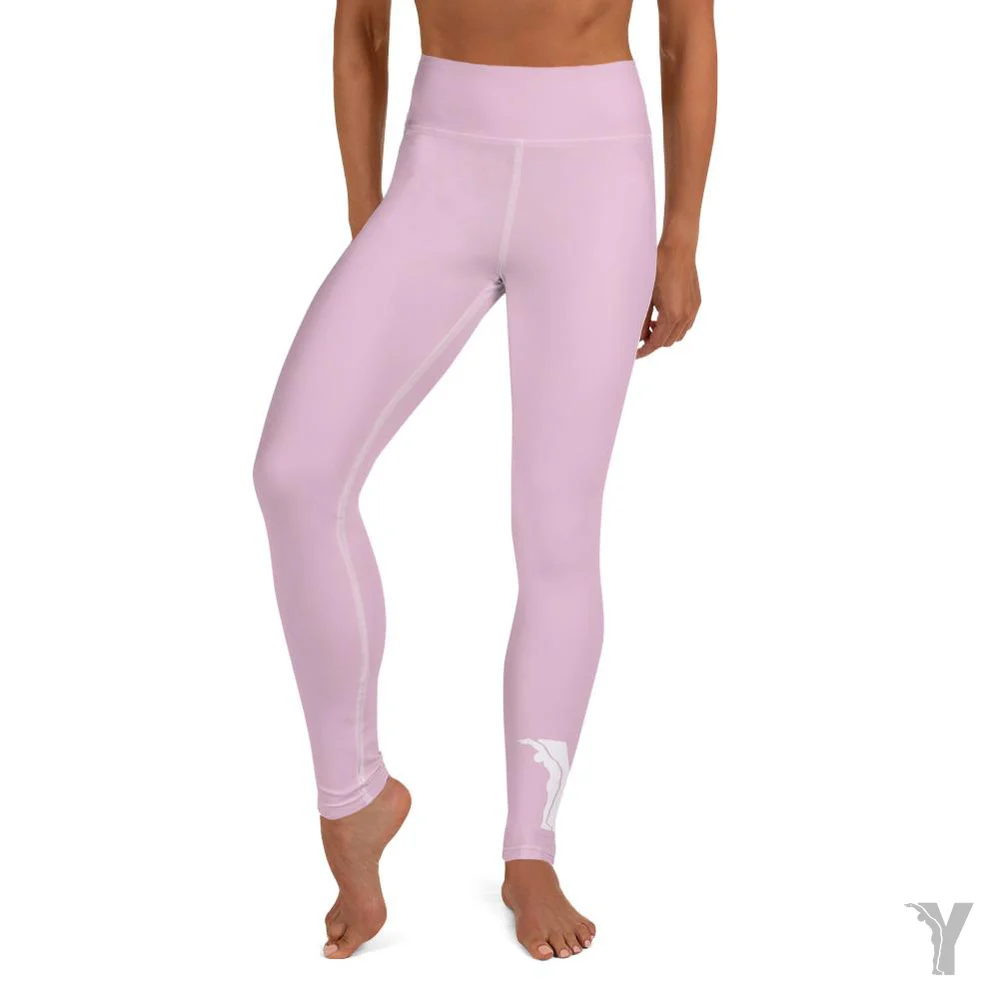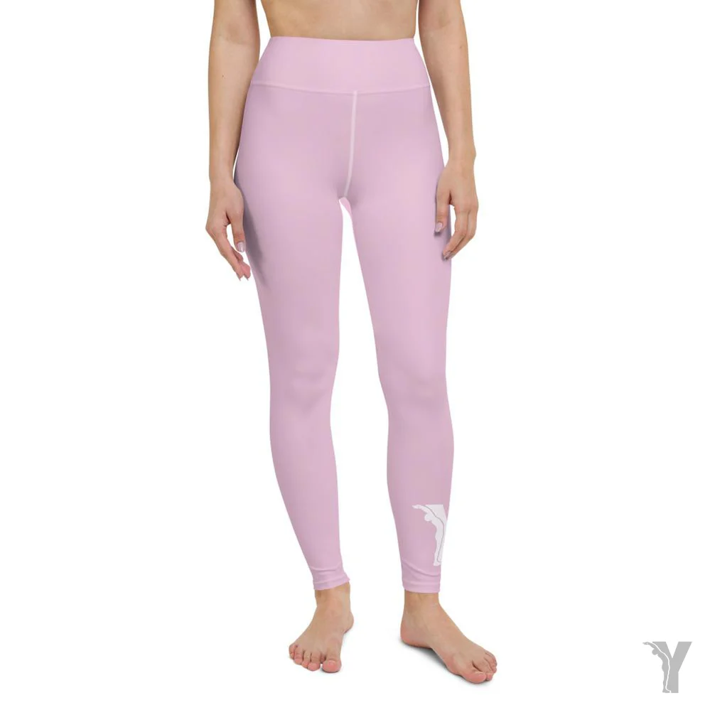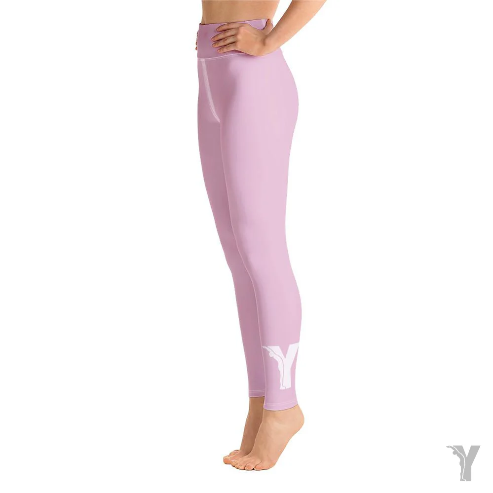 Ce yoga pant rose est avec imprimé du logo Yofe Yoga au niveau du mollet.