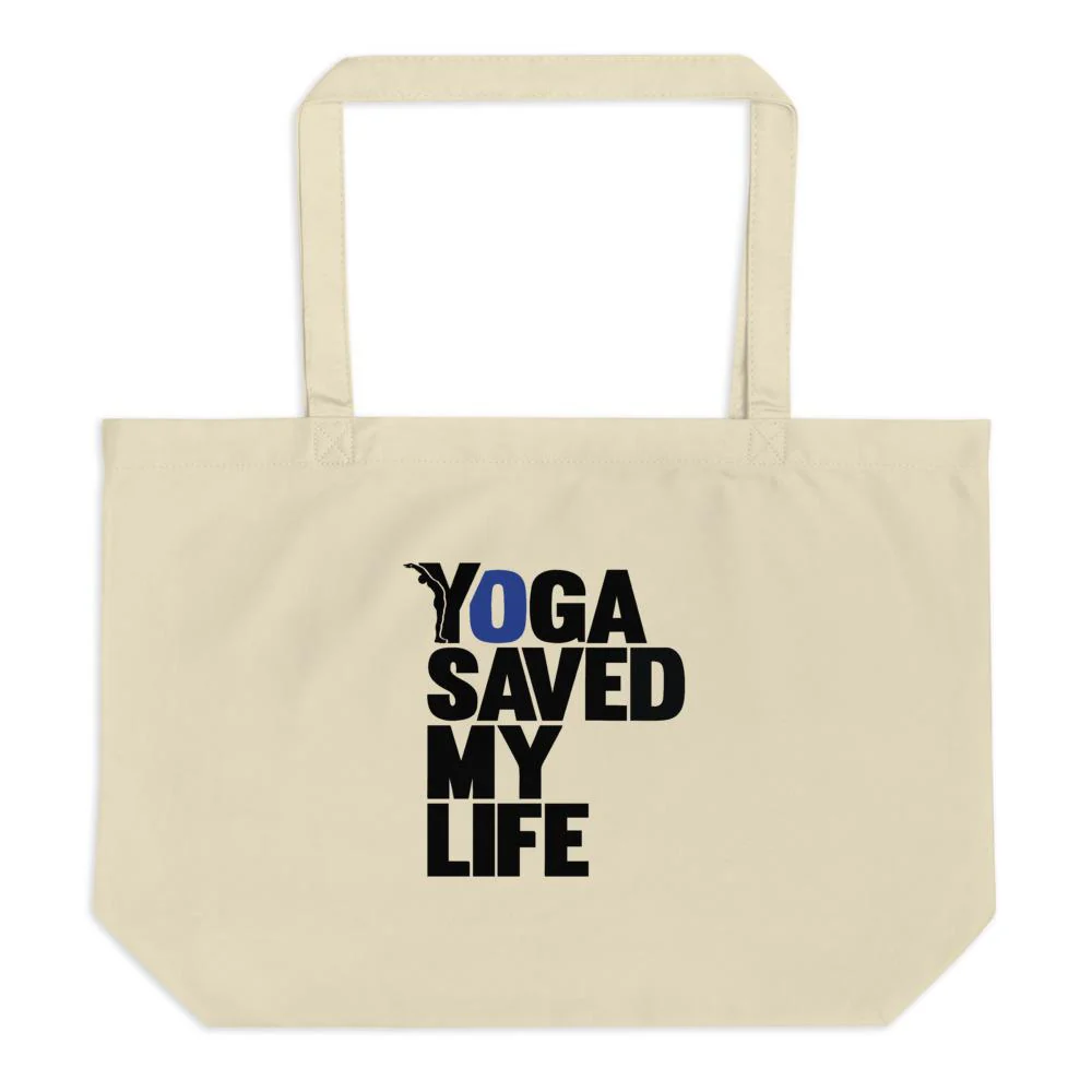 Ce sac en tissu imprimé « Yoga saved my life » (Le yoga m’a sauvé la vie) va te plaire si tu fais partie de la grande famille des adeptes du yoga !